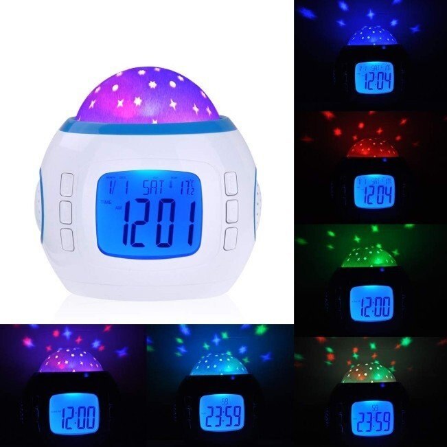 目覚まし時計 オルゴール 4way おしゃれ 置時計 大音量 プラネタリウム 子供 光 投影 温度計 デジタル 時計