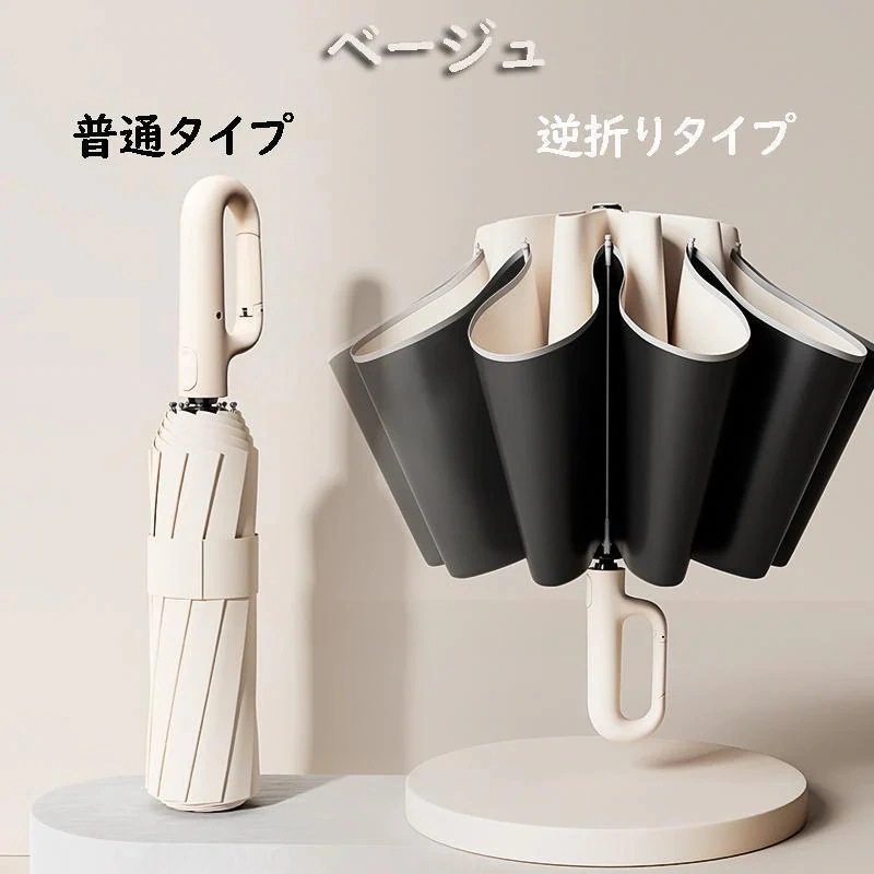 UVカットUPF50 紫外線遮断 逆さ傘 軽い メンズ 大きめ 自動開閉 【1~3日で出荷】折りたたみ傘 母の日 折り畳み傘 ワンタッチ レディース 晴雨兼用カラビナハンドル 軽量
