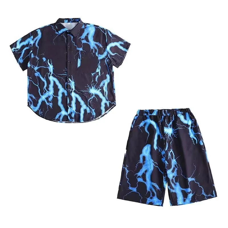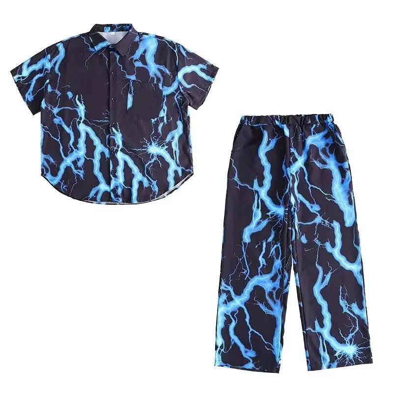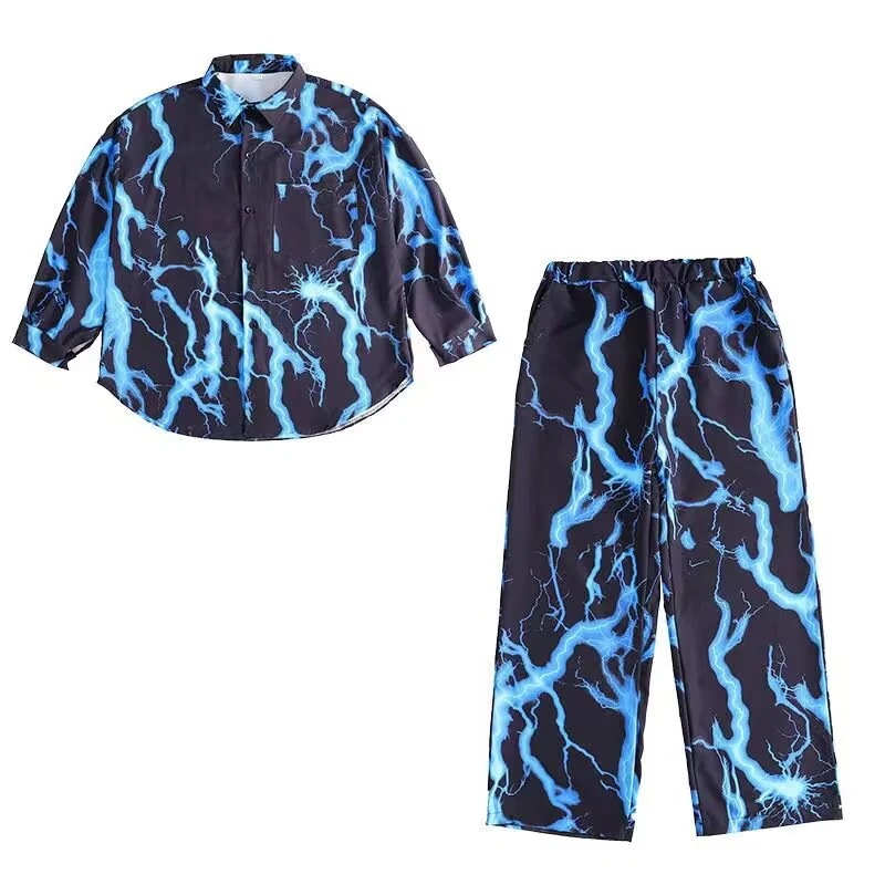 キッズダンス衣装 二点セット K-POP 新品登場 ダンス衣装 男の子 短パン 稲妻柄 ロングパンツ パンツセット ヒップホップ 子供30パーセント限定 半袖 セットアップ 長袖 女の子 パンツ