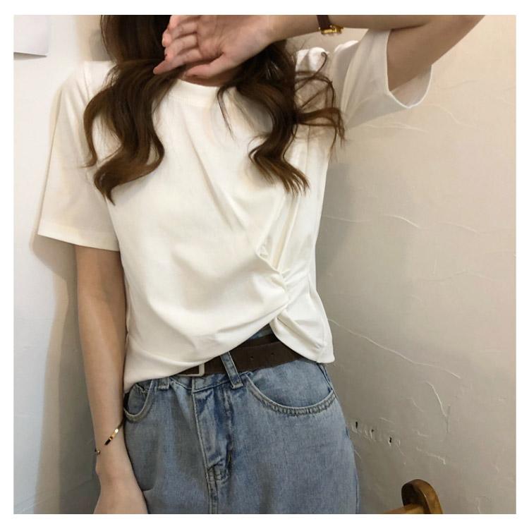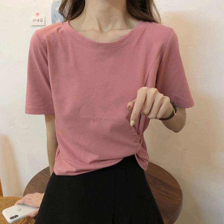 ショート丈 Tシャツ ダンス へそ出し カットソー アシンメトリー トップス 人気商品超目玉 クルーネック スポーツ ストレッチ ヨガ レッスン 練習着