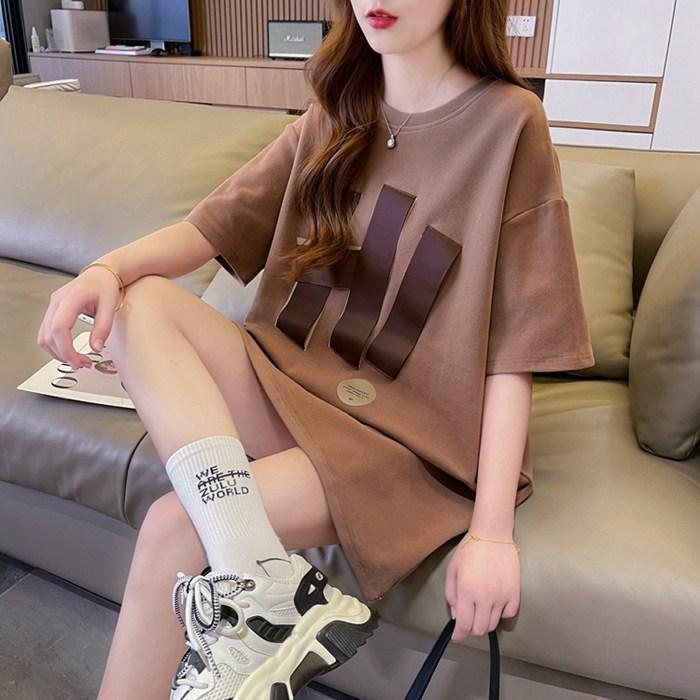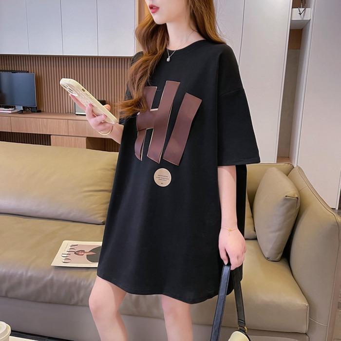 Tシャツ 半袖Tシャツ カットソー レディース 半袖 クルーネック Uネック ロング丈 新作登場 ロングTシャツ トップス ロゴ 英字 可愛い カジュアル