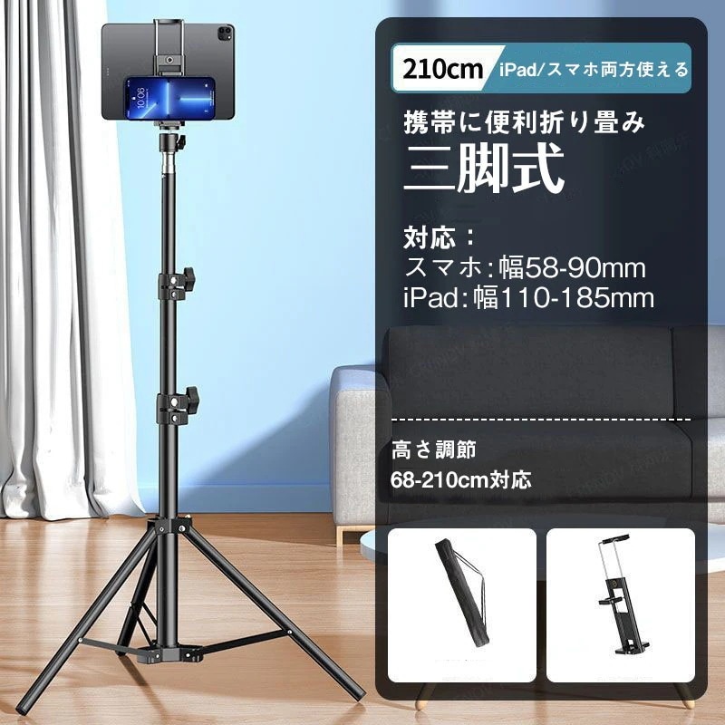 訳あり 折りたたみ 高さ調整 持ち運び [今日は安い-出荷が早い]タブレットスタンド スマホ iPad 床置き タブレット コンパクト 三脚 スタンド 360度回転 フロアスタンド