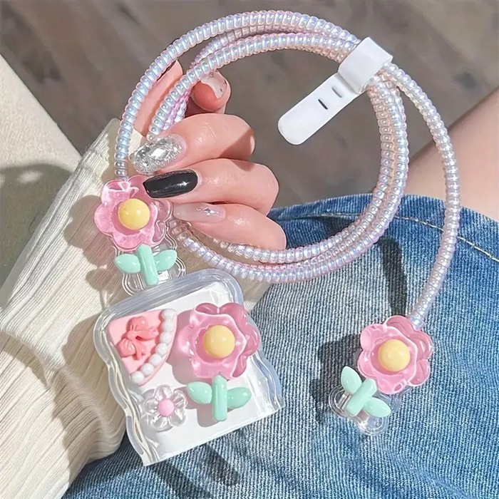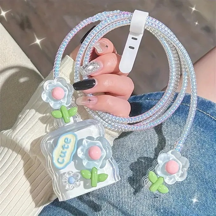 ケーブルカバー 防塵 プロテクター 耐衝撃 花柄デザイン 保護 キズ防止 カワイイ 落下防止 iPad 【1~3日で出荷】iPhone アダプタ 18W20W充電器用 充電 断線防止