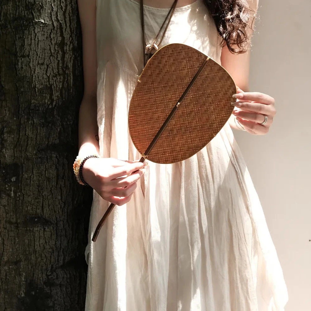 【HIHERO】レトロな青焼き扇手作り竹編み団扇中国式長柄竹製蒲扇夏のダンスは手が丈夫で引き裂かれない8