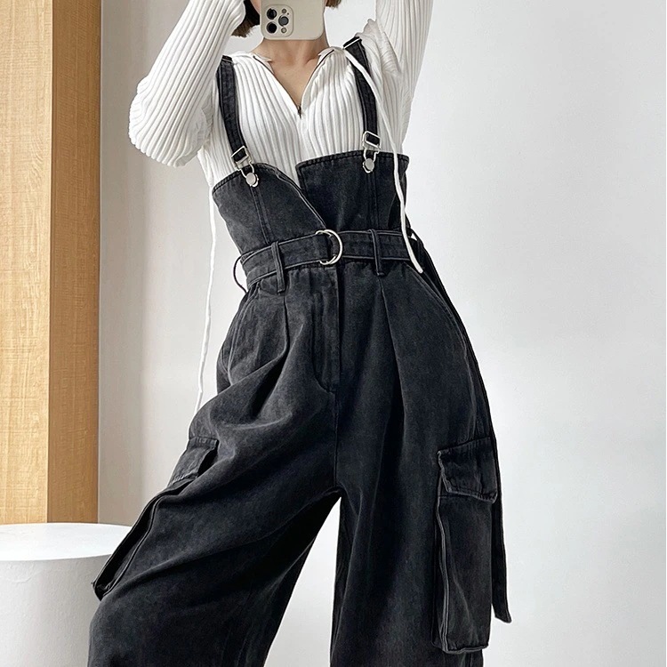 大きいサイズ 時短コーデ サロペット デザイン感 レディー オールインワン 韓国ファッション 新作 イチオシオールインワン 【HIHERO】コーデ完成!サロペット デニム ワイドパンツ オーバーオール