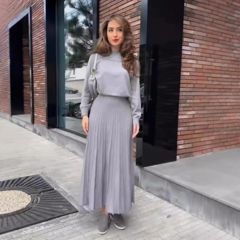 2025春新作セットニット 長袖セーター+スカート ワイドパンツ 無地 上下セット体型カバー 二点セット 上下セット セットアップ ワンピース