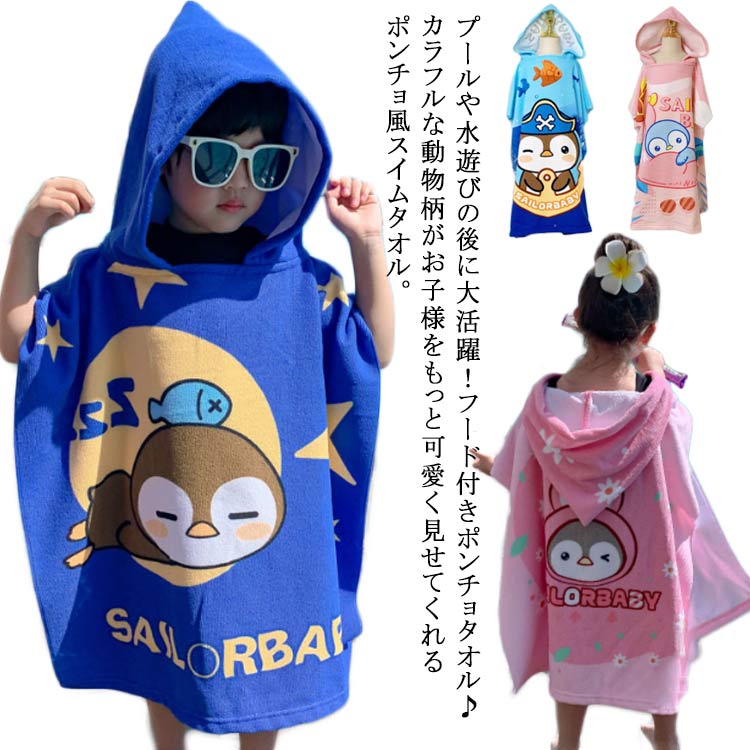 ラップタオル キッズ バスタオル 男の子 女の子 子供 プールタオル ポンチョ フード付き マイクロファイバー 速乾吸水 お着替えポンチョ ビーチタオル ポンチョタオル 子供用 バスローブ コンパクト
