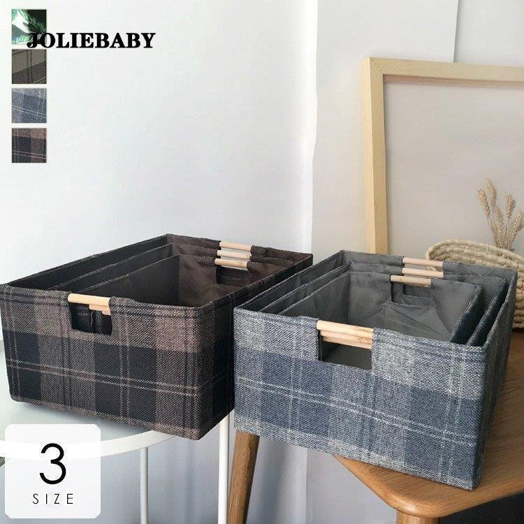 日用品雑貨 生活雑貨 収納用品 かご バスケット 隙間収納 お手軽 折り畳み 軽い 持ち運びやすい チェック柄 取っ手付き3401
