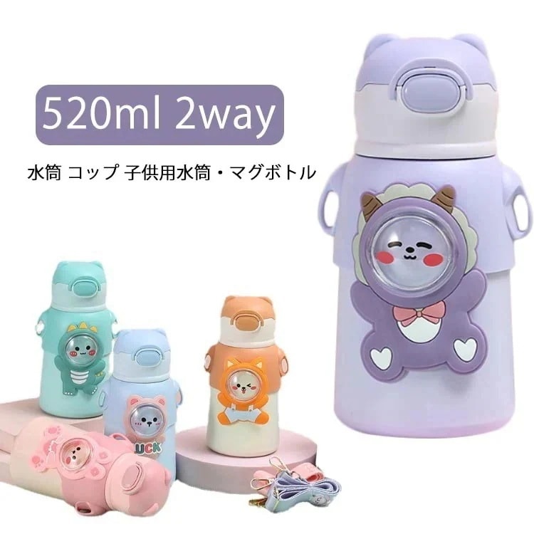 水筒 キッズ 5ml ステンレスボトル 子供用 ストロー 直飲み 2way ステンレスケータイボトル 男の子 女の子 子ども 保冷 保温 超軽量 漏れ防止 広口 洗いやすい 遠足 入園準備 水筒子33