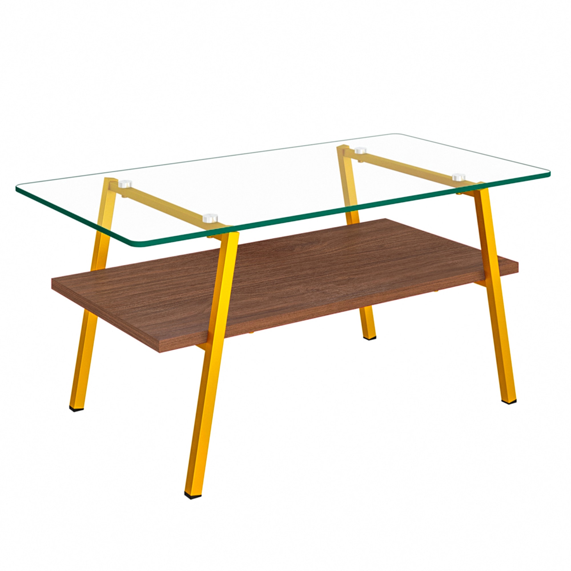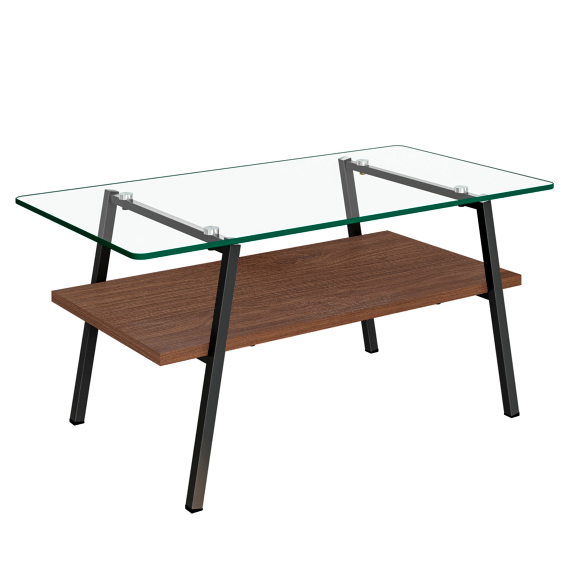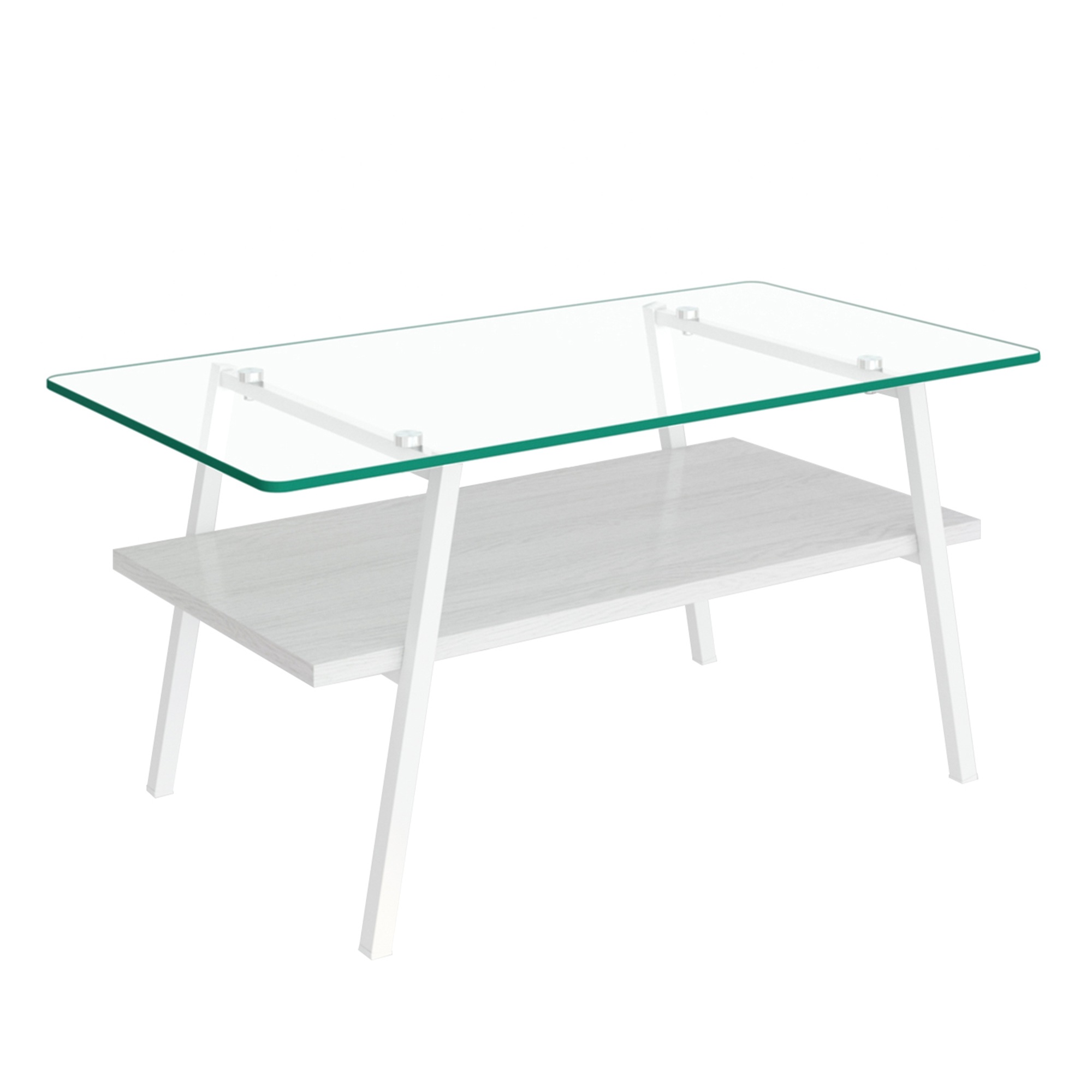 モダン長方形ガラステーブル コーヒーテーブル 強化ガラス天板 MDF収納棚板付き ローテーブル センターテーブル リビングルーム用