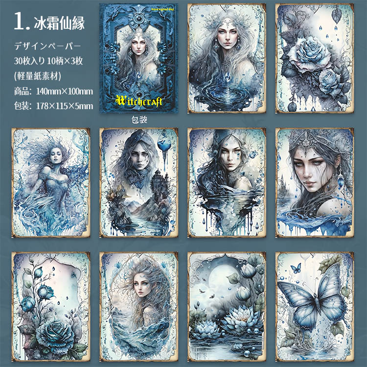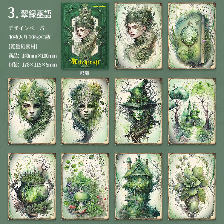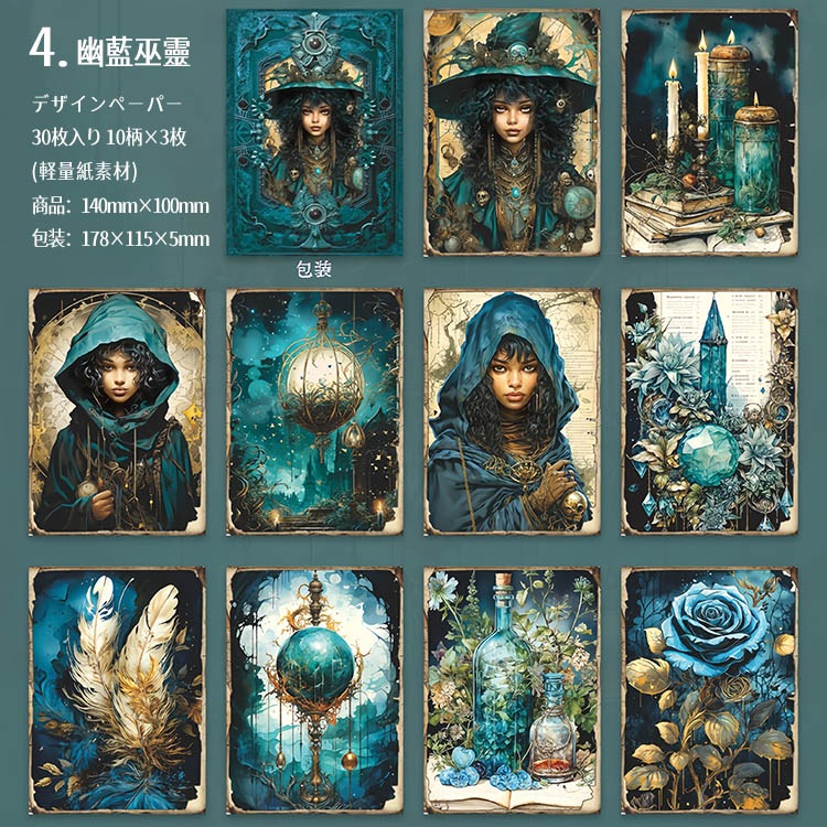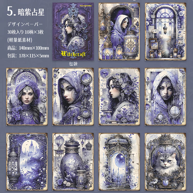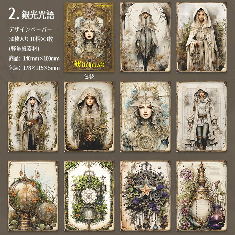 デザインペーパー 素材紙ブック 魔法 神秘 幻想 妖精 占い 素材紙 背景紙 海外 紙物 紙もの 紙モノ 背景 メモパッド コラージュ素材 おしゃれ 30枚 ヴィンテージ sztz-30-370