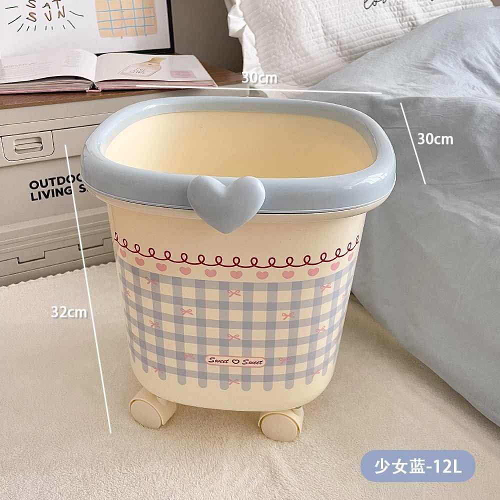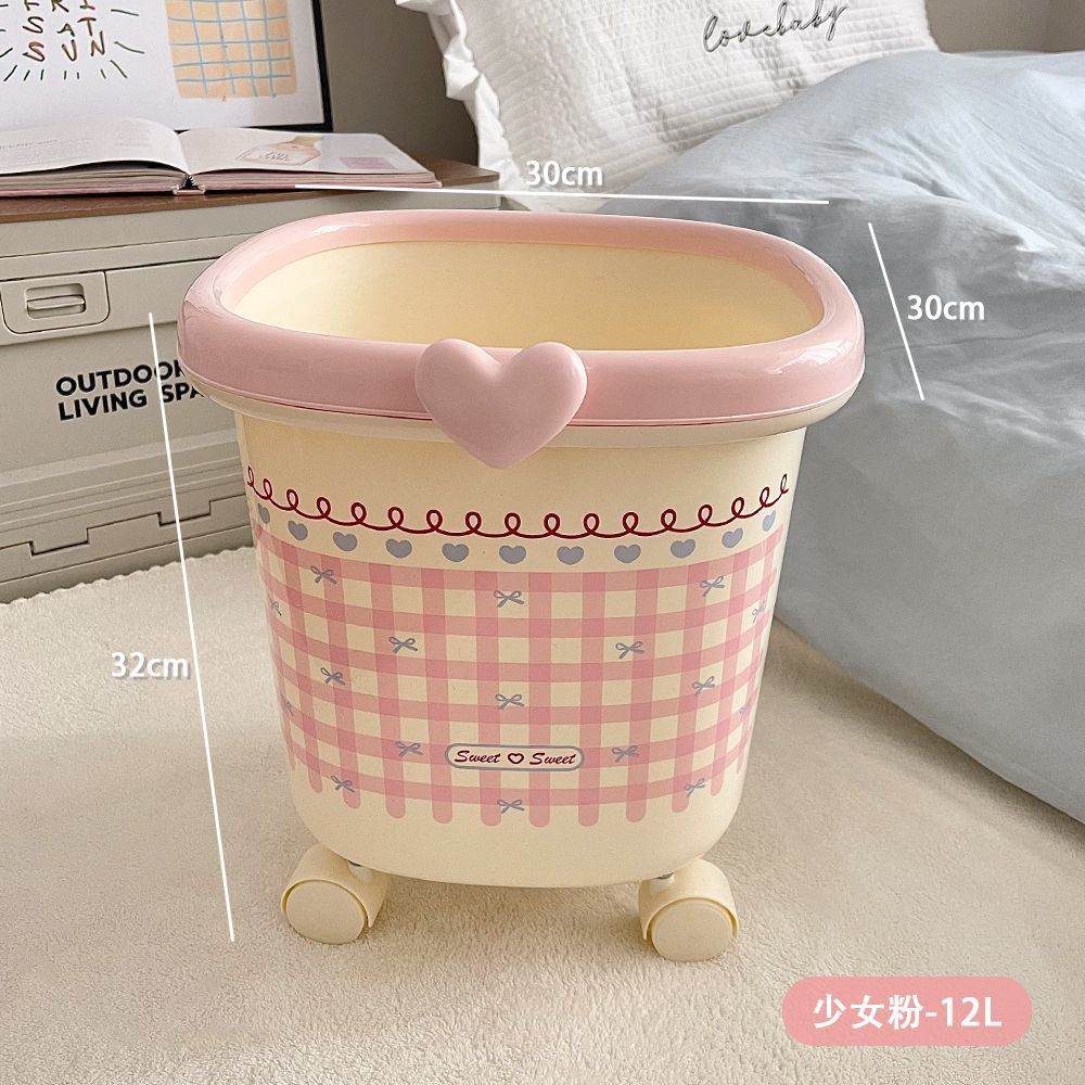 【キャスター付き】可愛いデザインのゴミ箱 大容量 リビング/寝室用 おしゃれ圧着式蓋 ホワイト/パステルカラー展開