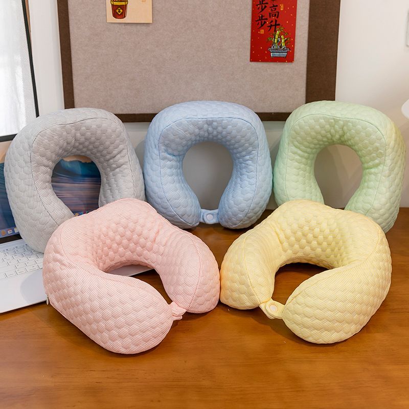 夏用 冷却U型枕 アイスシルク素材 洗える メモリーフォーム 旅行/飛行機/昼寝用