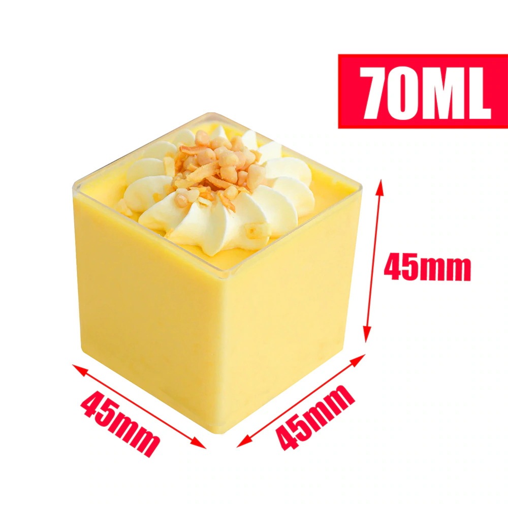 ムースケーキカップ スクエアカップ デザートテーブル 斜め口 プリンゼリーカップ ティラミスウッド チャフカップ 使い捨てプラスチックカップ人気のある
