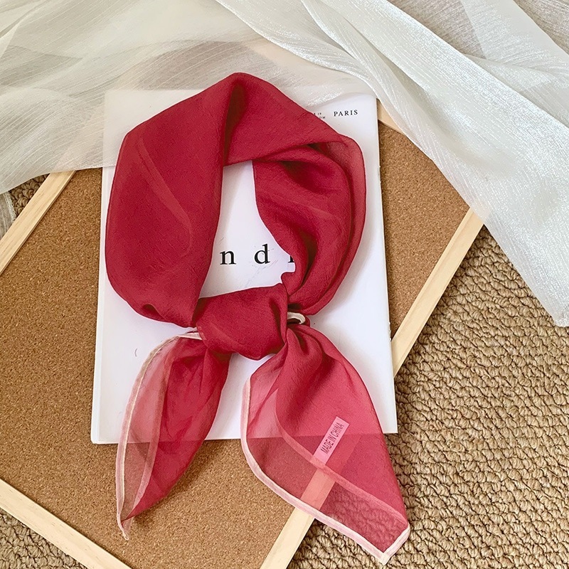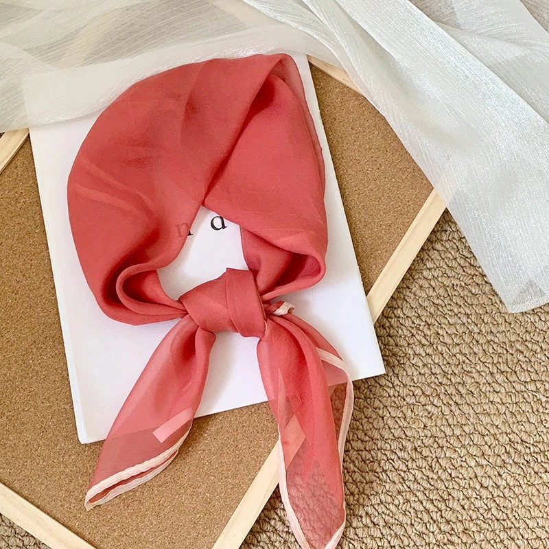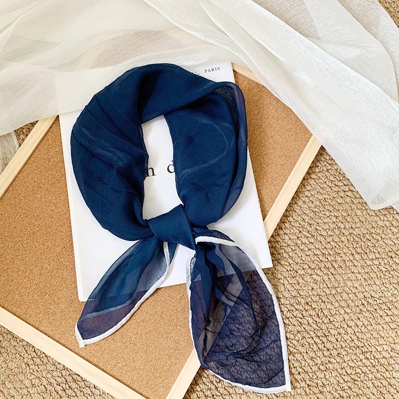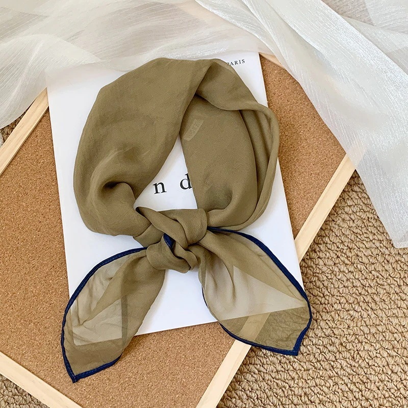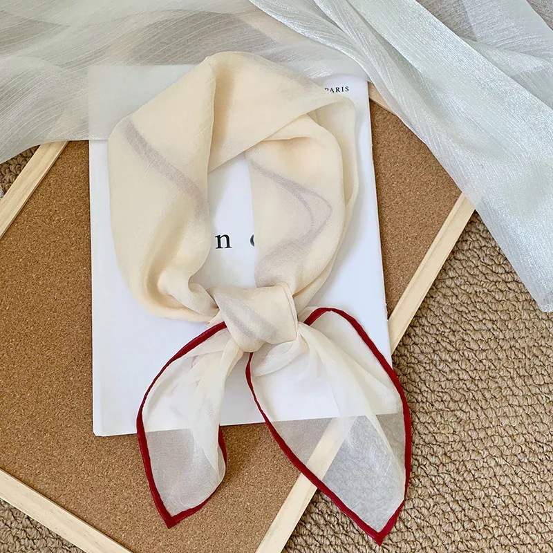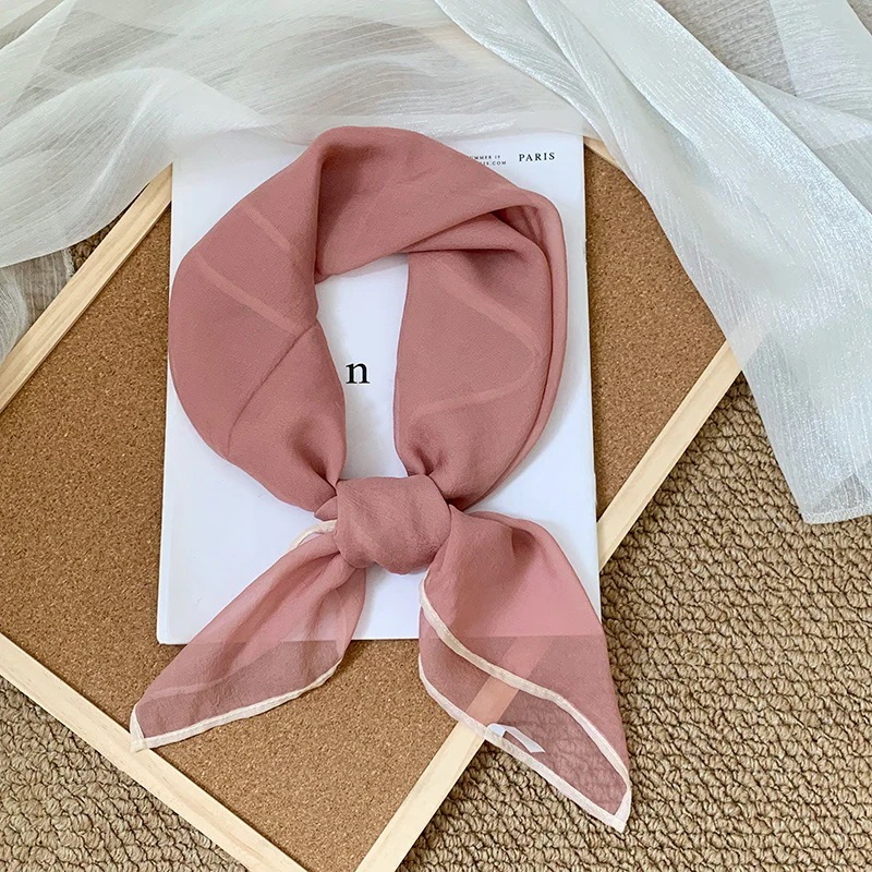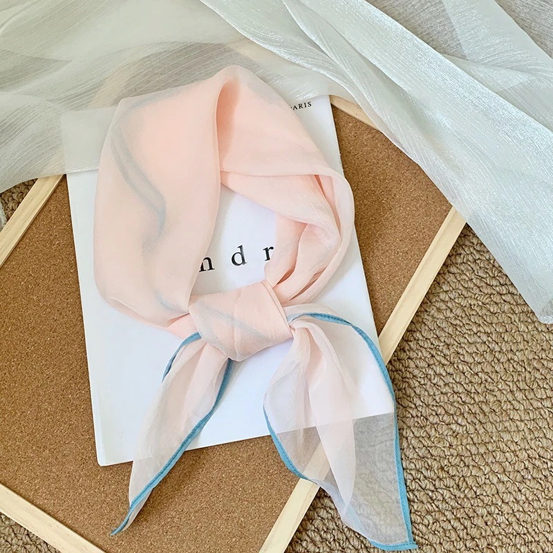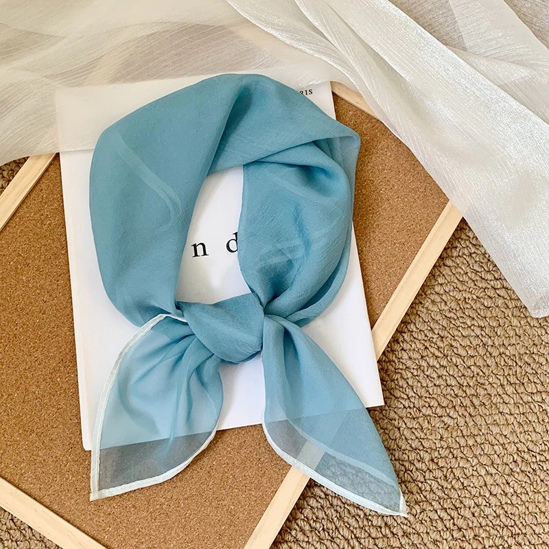 首に巻く小さな方巾清新でレトロな雲模様シルクスカーフ文芸的な首保護用スカーフ包頭巾髪帯シルクスカーフ