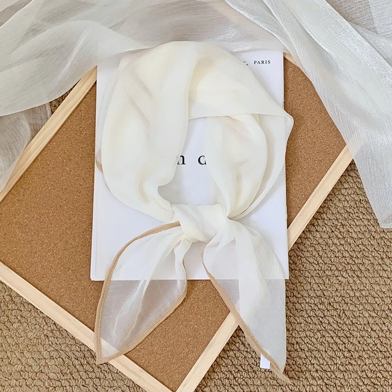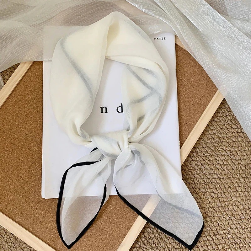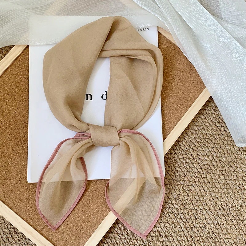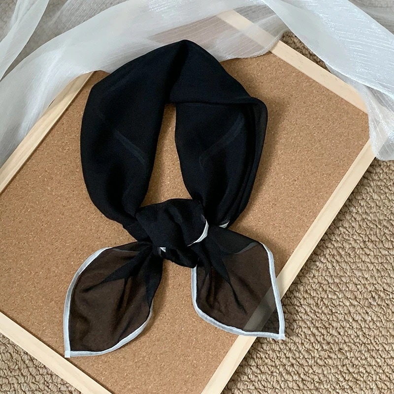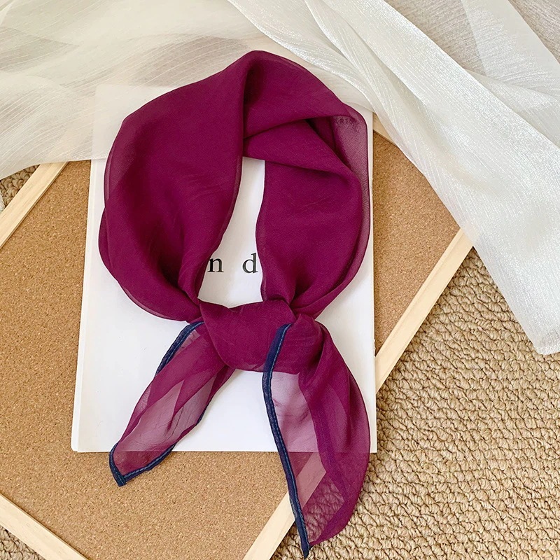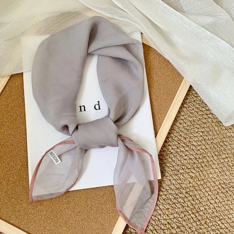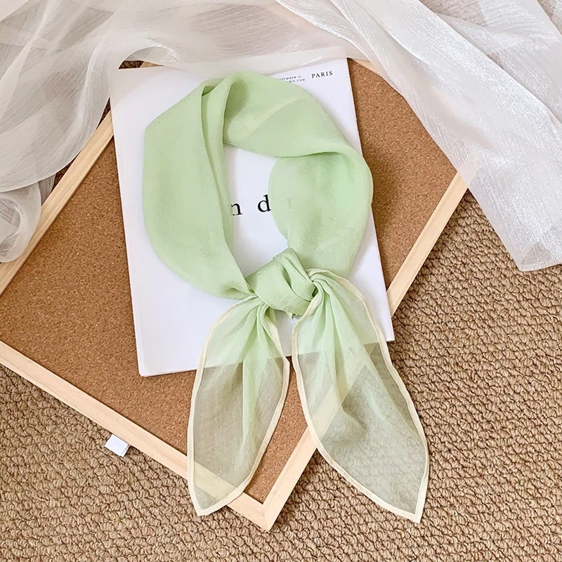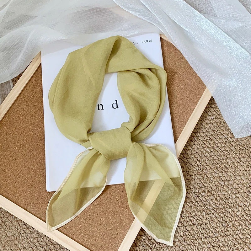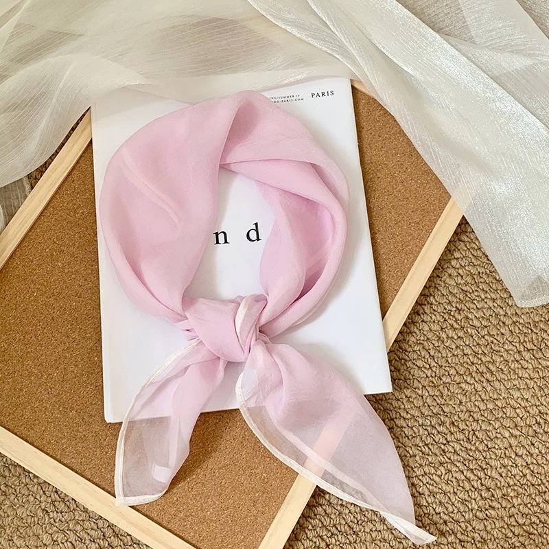 首に巻く小さな方巾清新でレトロな雲模様シルクスカーフ文芸的な首保護用スカーフ包頭巾髪帯シルクスカーフ