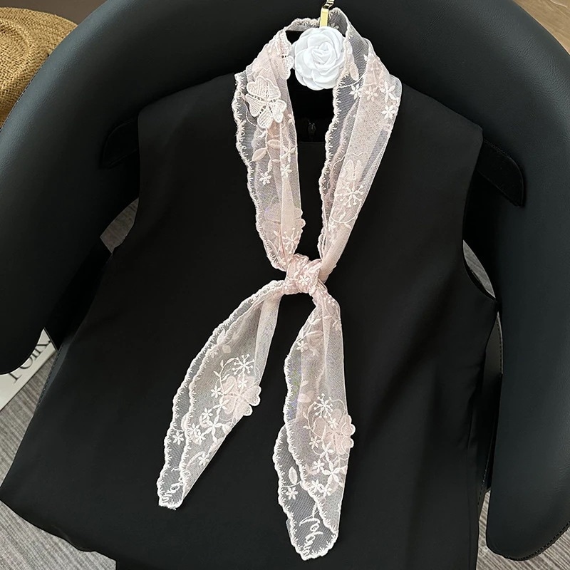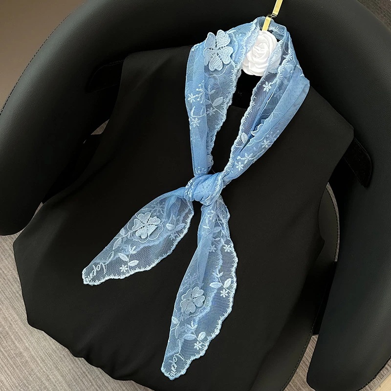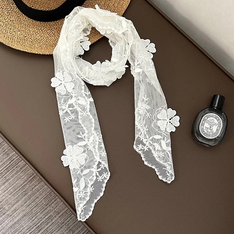 長方形のシルクスカーフ 新作 単色花柄レースシルクスカーフ 装飾用スカーフ ヘッドスカーフ ヘアバンド ヘアタイ ヘアバンド ヘアタイ リボン