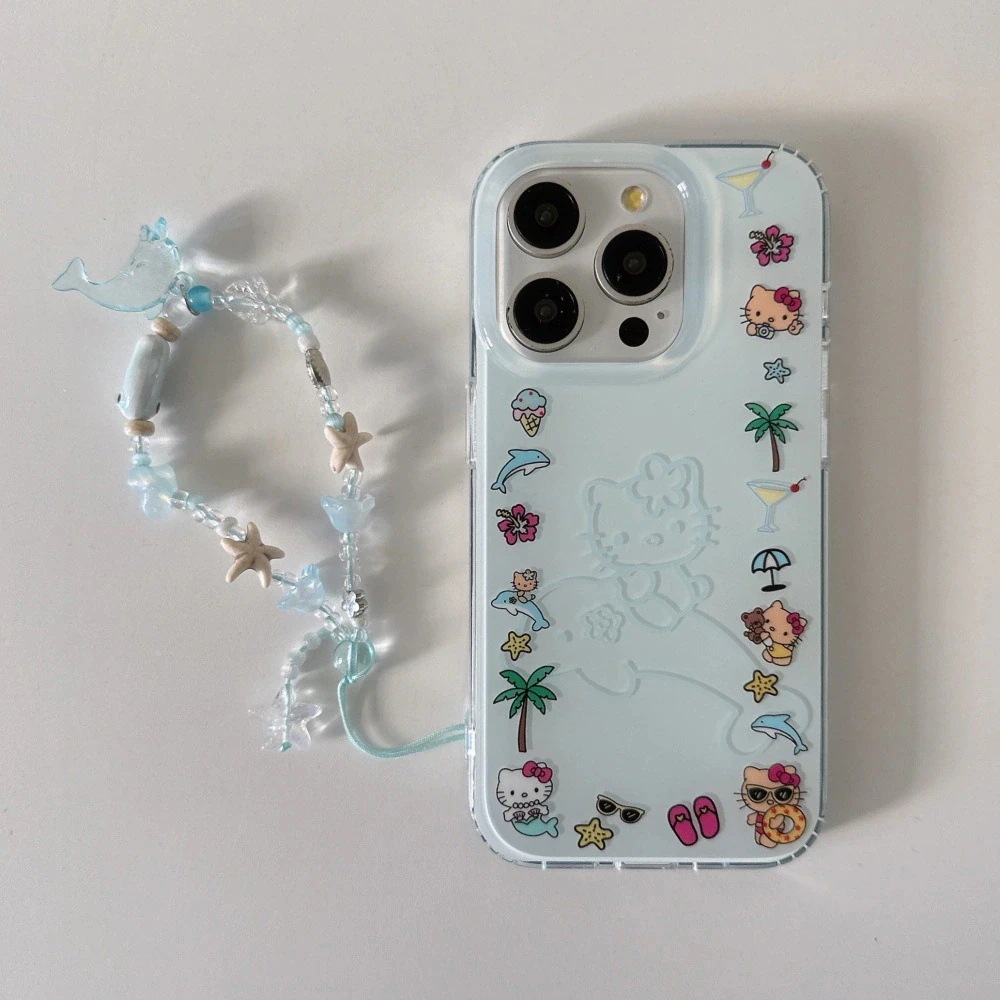 かわいい少女心を表現したイルカデザインのKTケースiPhone 15/16 Pro MaxApple 13対応のスマートフォンケース14cmのチェーン付き