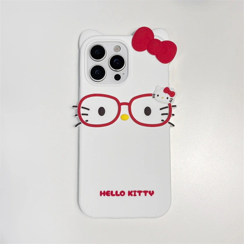 アニメ風立体かわいいメガネKT猫デザイン iPhone 16 Pro Max用スマホケース 13/14/15用シリコン製ソフトケース