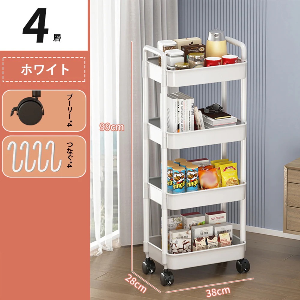 ワゴン キッチンワゴン 4段 キャスター付き 収納ワゴン キャスターワゴン 全体耐荷重60kg 収納家具 キッチン家具 隙間収納 ランドセルラック おもちゃ箱 キッチン 洗面所収納 小物 おしゃれ