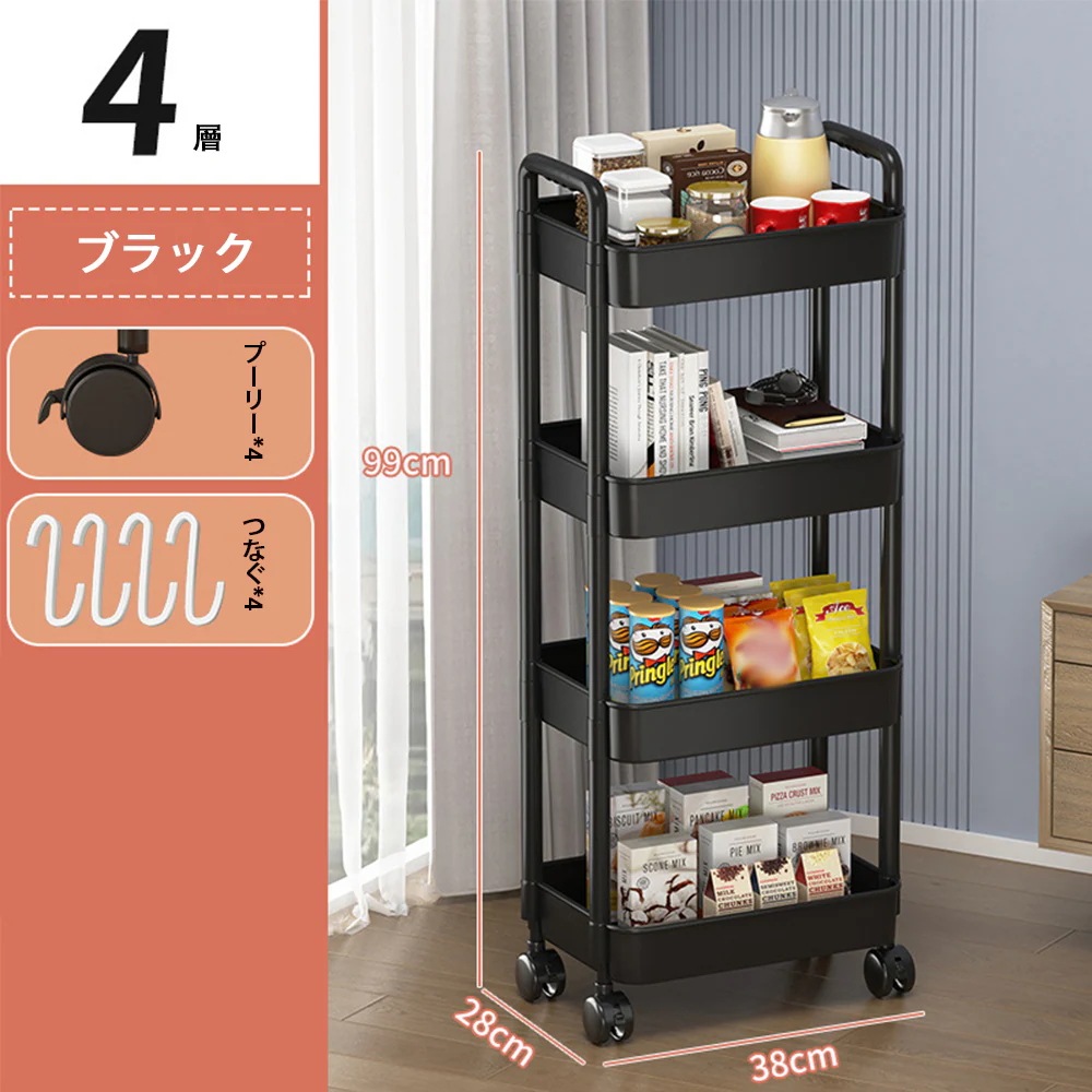 キッチンワゴン 4段 キャスター付き
