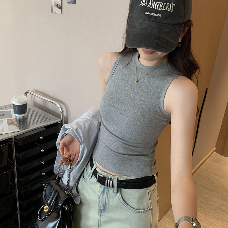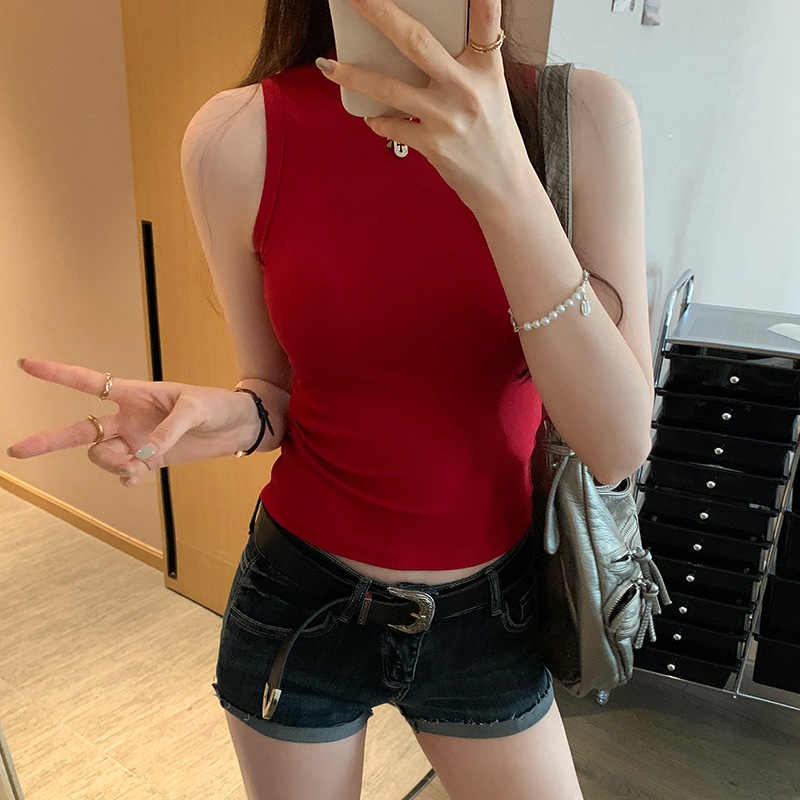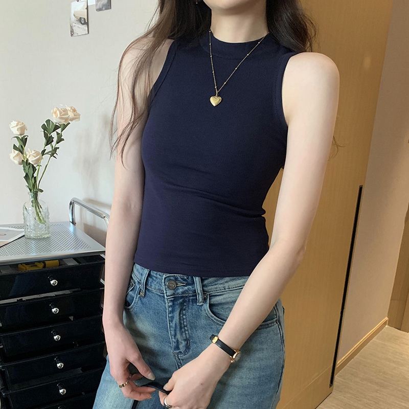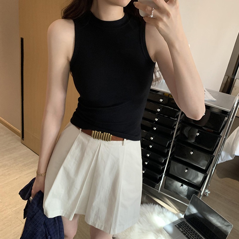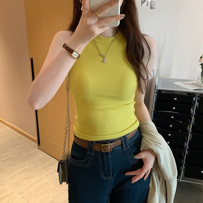 タンクトップ レディース 無地 ノースリーブ ラウンドネック ニット キャミソール 夏服 インナー