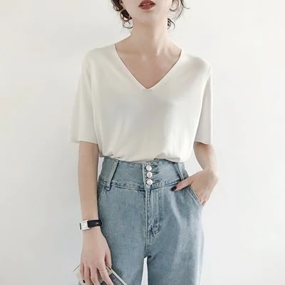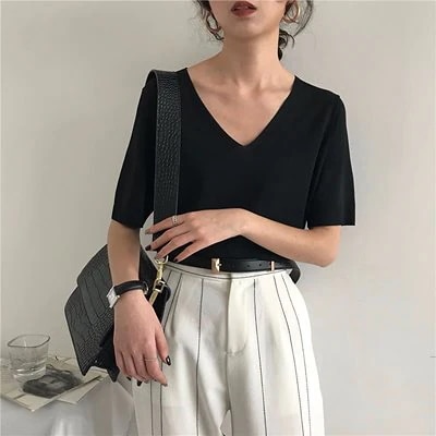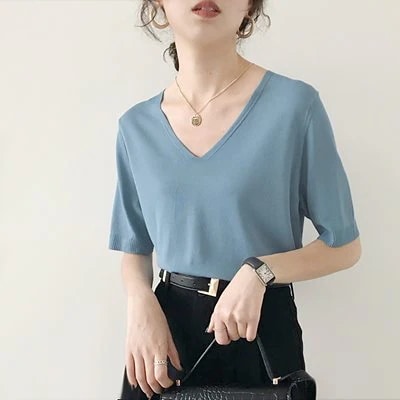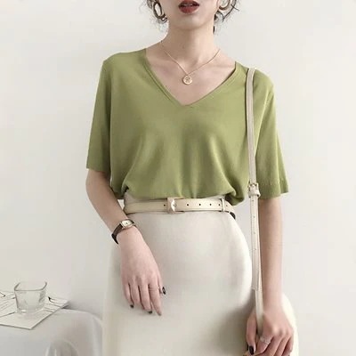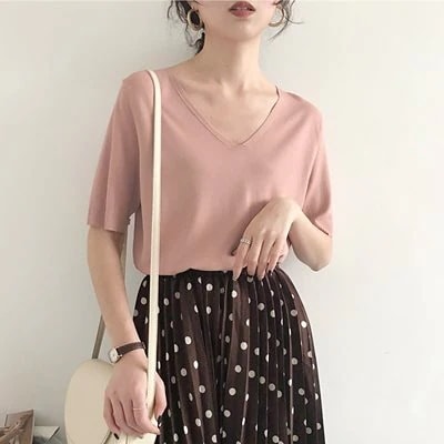 ニットトップス レディース 半袖 タンクトップ トップス 無地 ストライプ Vネック 韓国ファッション