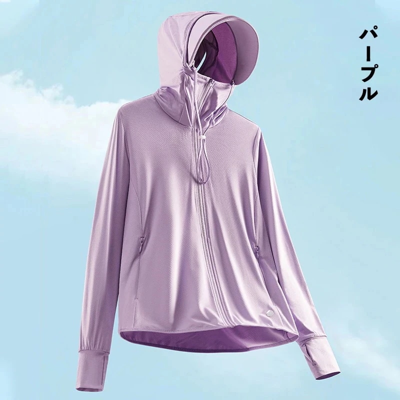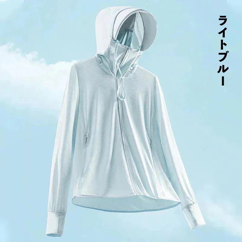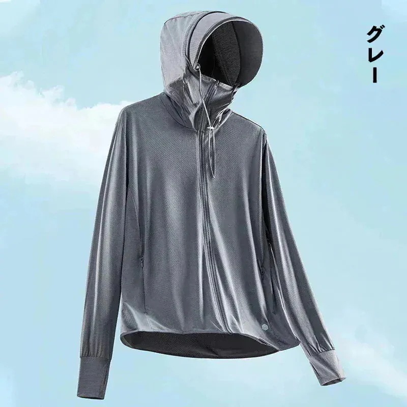 【2枚購入で2oo円OFF!】夏用UVカットパーカー 冷感-7℃日焼け防止無地長袖ウター メッシュ 素材フード パーカー通気口 指穴 つば (男/女)m-4xl 生地涼し