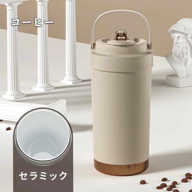 タンブラー セラミックタンブラー 500ML 750ML 二重構造 保温携帯コーヒーカップ おしゃれ 大容量魔法瓶 保冷 耐熱 蓋付き トラベルカップ 軽量 持ち運び