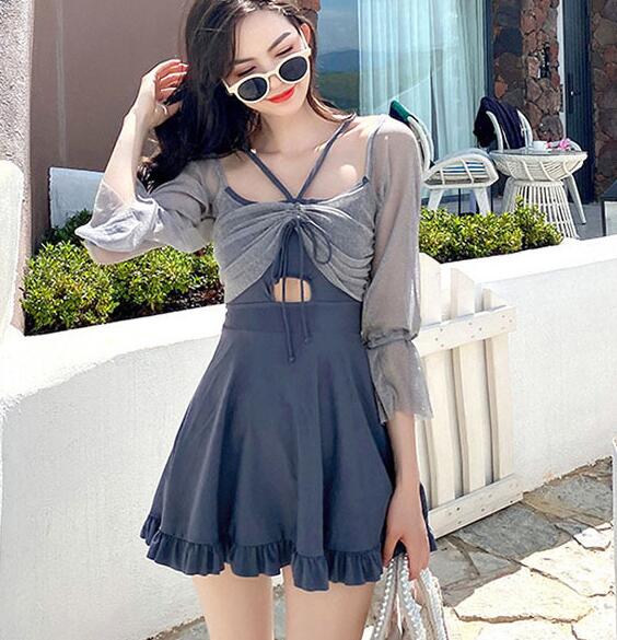 水着 レディース 体型カバー 水着ワンピース型 サロペット水着 長袖 UVカット 肩出し 小胸バンドゥ オシャレ可愛い スイムウェア 学生 ラッシュガード ビーチ
