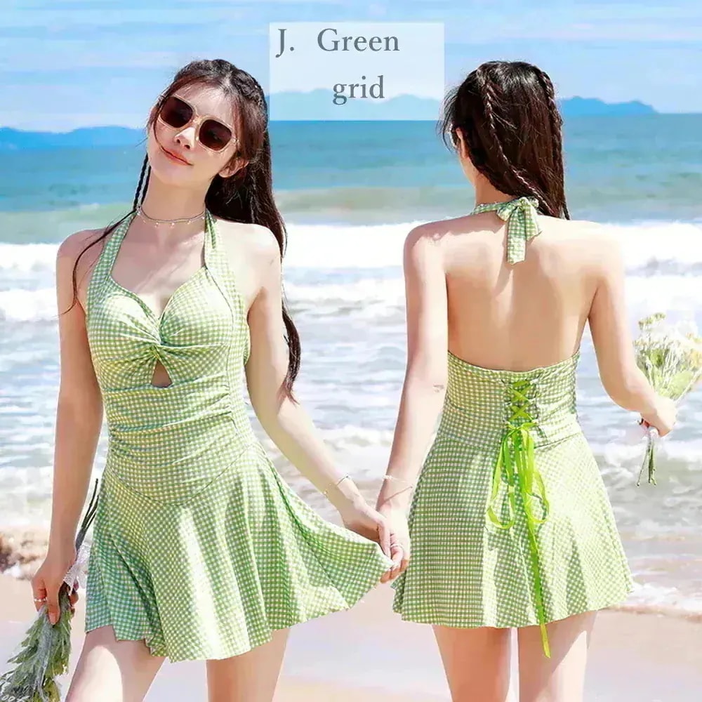 魅力ビキニ 水着 レディース 体型カバー水着 おしゃれ パッド一体型 ワイヤー入り ギンガムチェック セクシー お尻 太もも カバーアップ 露出控えめ ママ水着 20代 30代 40代