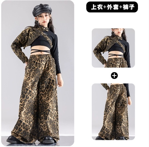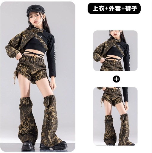 キッズダンス衣装 セットアップ ガールズ ヒップホップ 衣装 派手 ヒョウ柄 レオパード ダンス衣装 キッズ 子供ダンス服 ダンスウェア K-POP 韓国