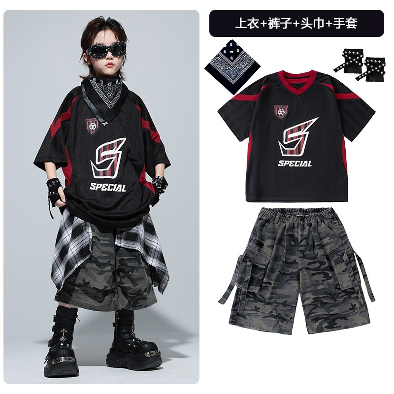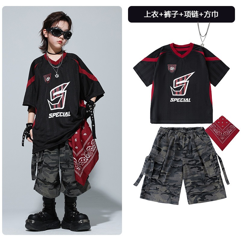 2026年 子供用ストリートダンス 小学生 迷彩柄 パフォーマンスコスチュームトレンディでクールなジャズダンス ハイホップ ストリートパフォーマンス衣装