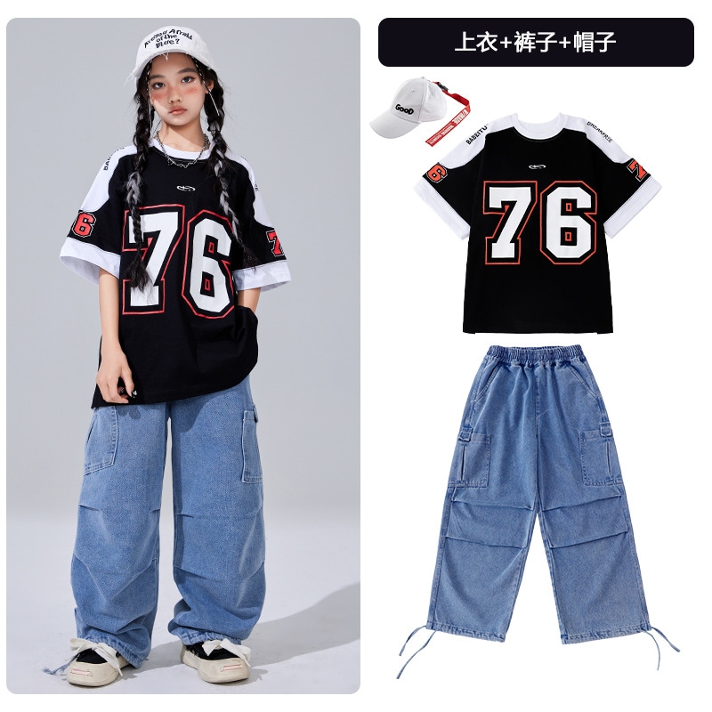 2026年 子供用ストリートダンス 小学生 ドーパミンパフォーマンス衣装男の子用夏用半袖セット女の子用パフォーマンス衣装