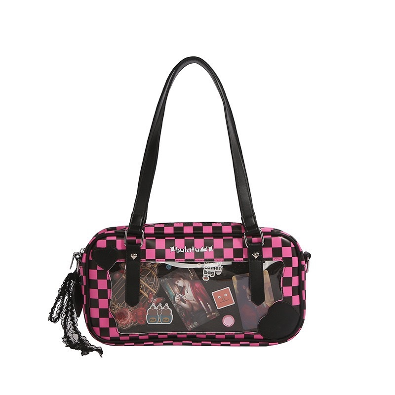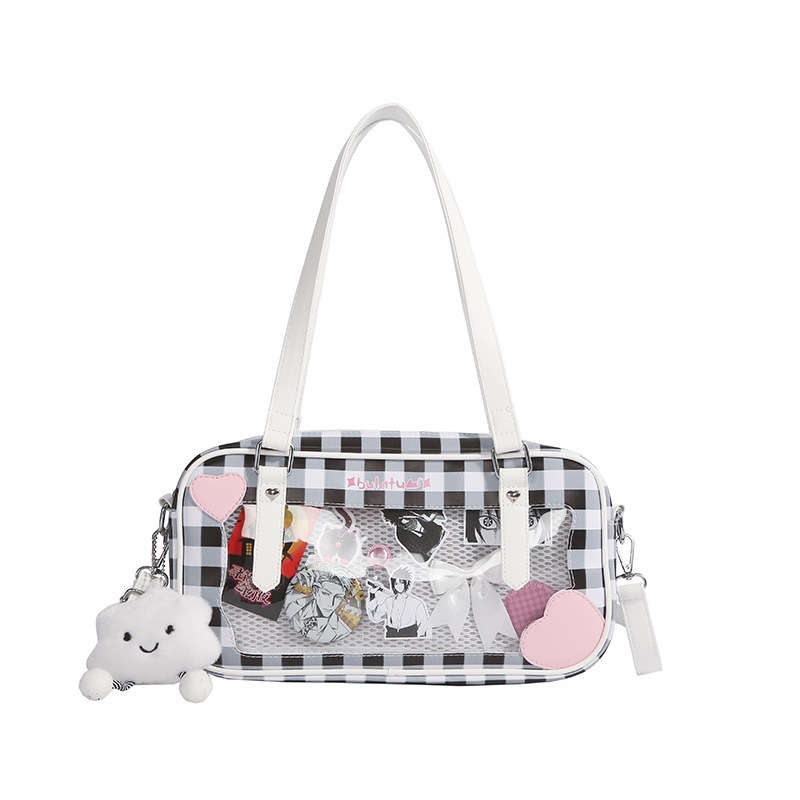 2026年最新 チェック柄 アニメ スクールスタイル 小型 米袋 きしみ音付き 学生用ハンドバッグ/ショルダーバッグ レディース