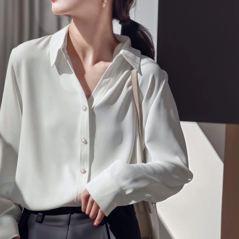 秋 長袖ブラウス 新作 vネック フレンチ 長袖 サテンのシャツ インナーシャツ レディーストップス
