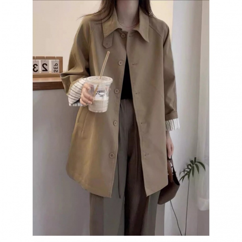 カーキのパーカーレディース秋の新作韓国版ゆったりミディアムカジュアルトップス