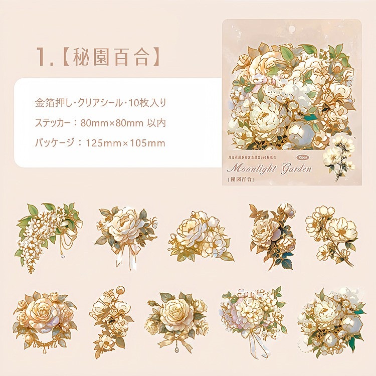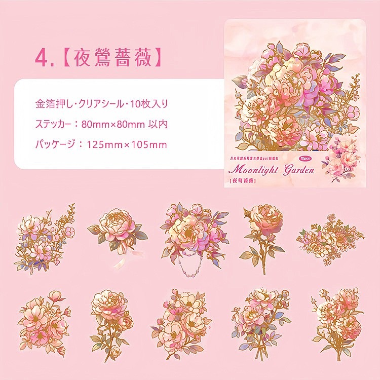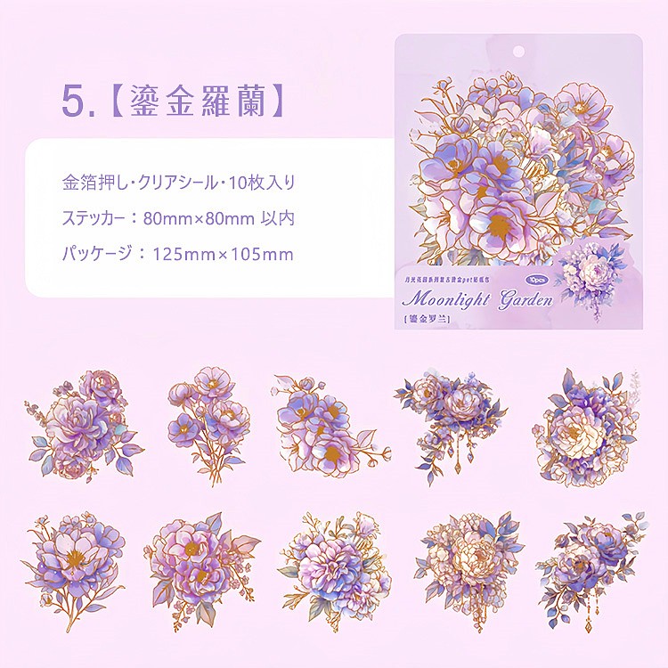 金箔押し 大きめ 華やか 花びら PET 耐水 シール コラージュ素材 ローズ 薔薇 紫陽花 アジサイ ラージサイズ クリアシール 手帳 シール 花柄 イラストシール sztz-10-172
