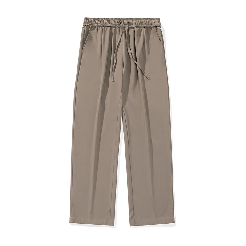 涼感通気性のあるカジュアルパンツ(メンズ春夏用薄手タイプ)ストレートシルエットのゆったりとした垂れ感でシワになりにくい基本の万能ロングパンツ