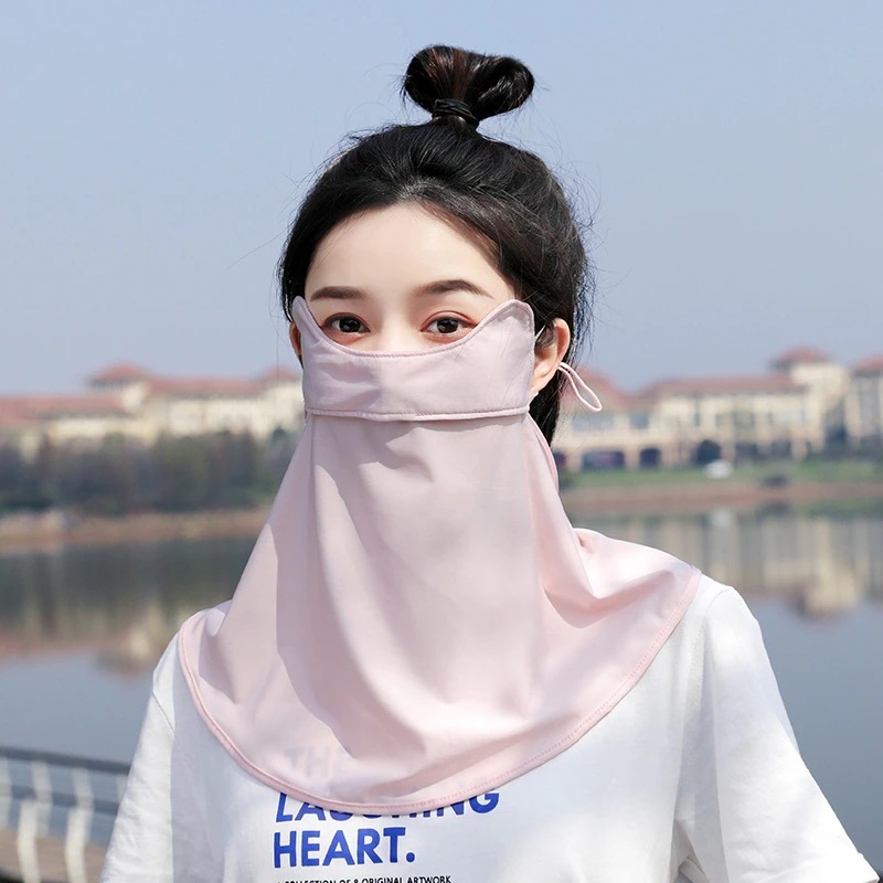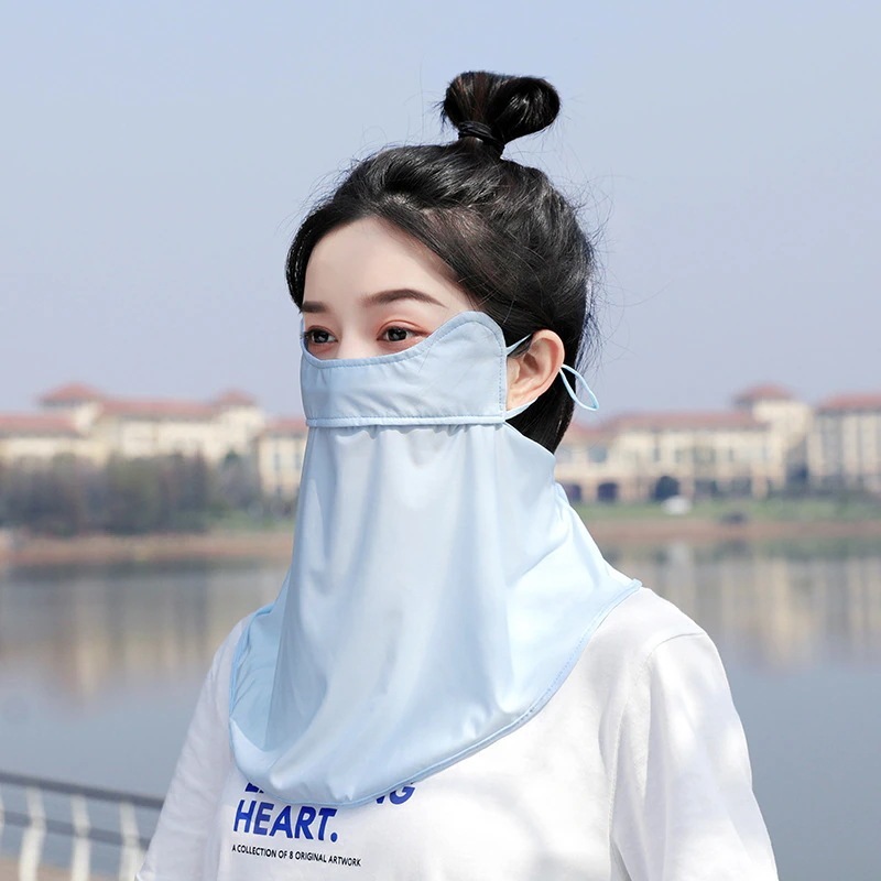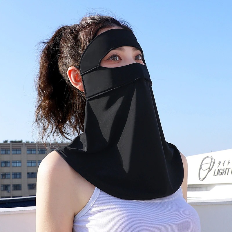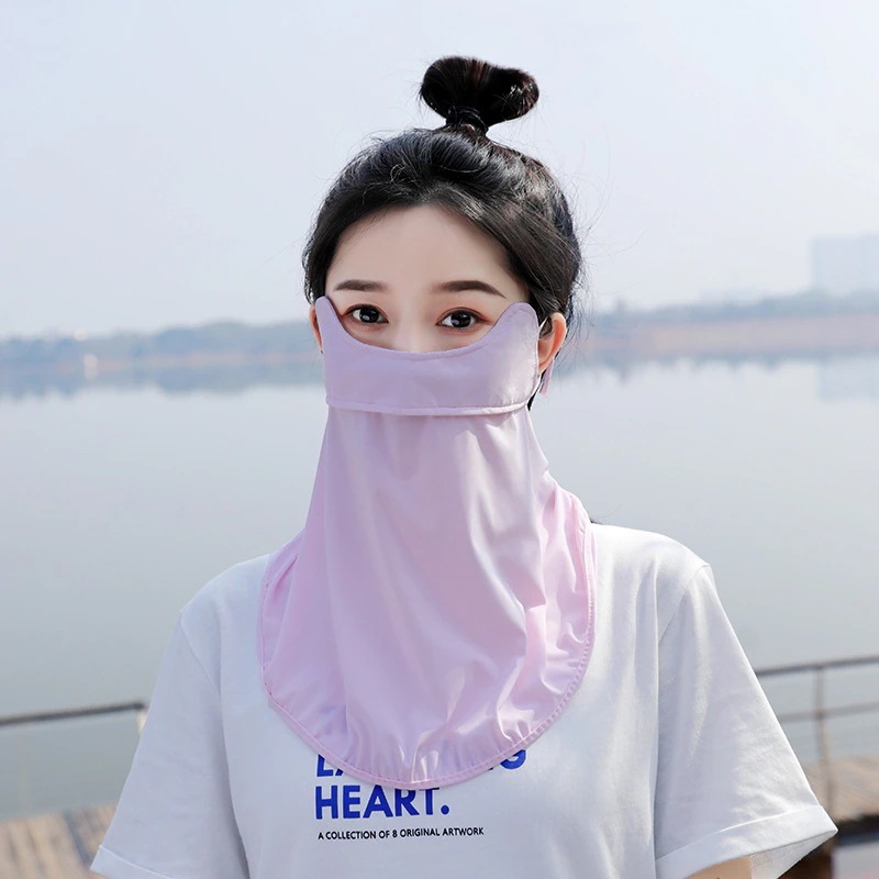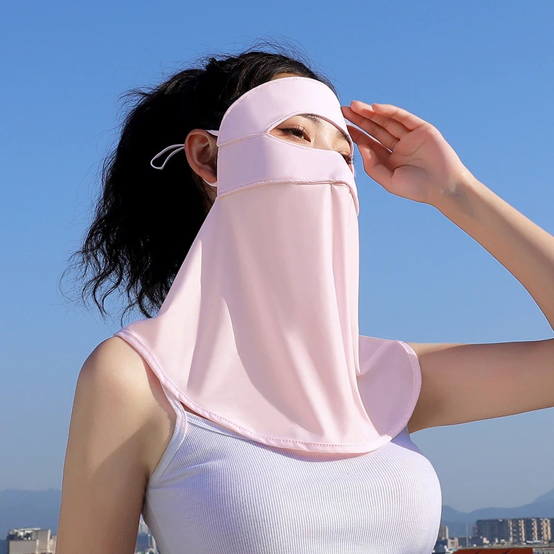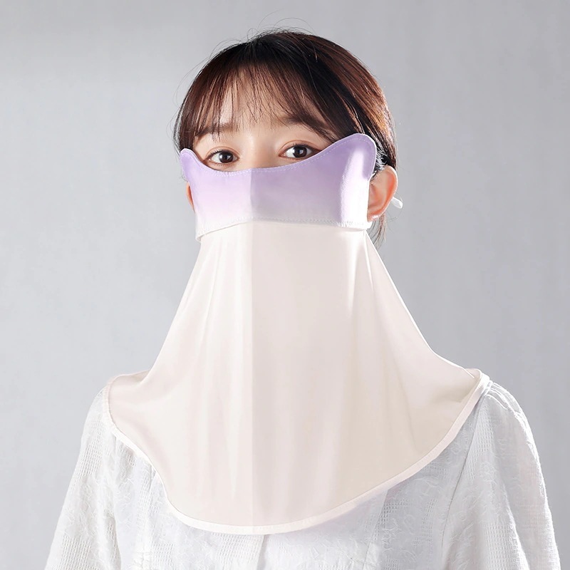 首元を保護する日焼け防止マスク(女性用) 全顔用アイスシルクマスク 塵防止・洗濯可能 グラデーションデザイン 屋外サイクリング用 夏用マスク