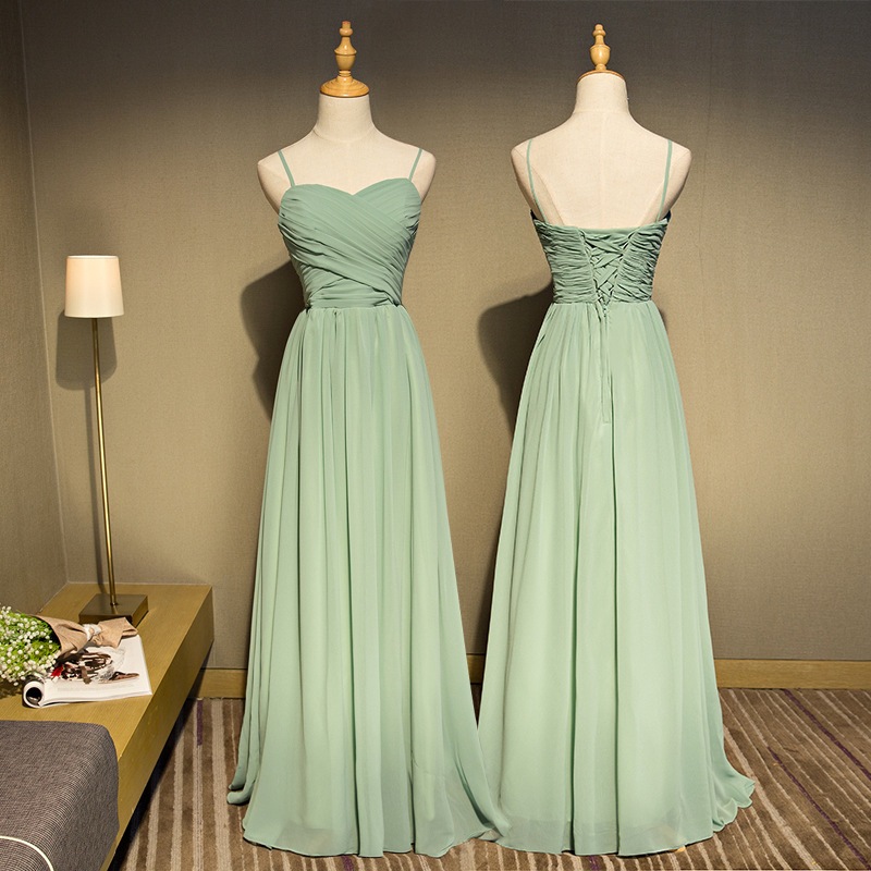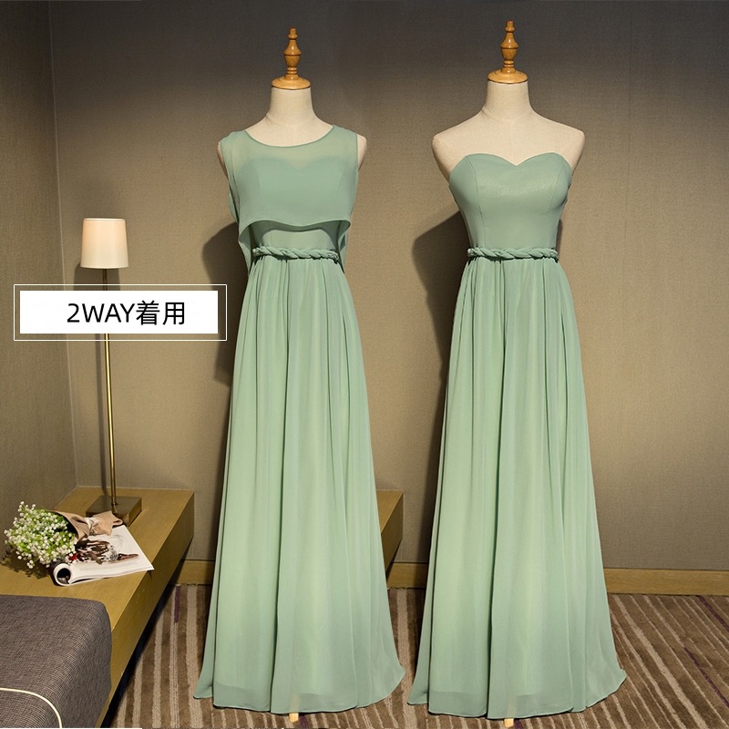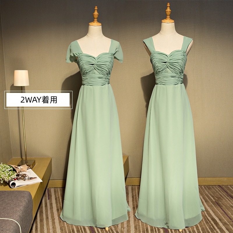 ウェディングドレス ブライズメイド カラードレス 緑 シンプル 韓国風 無地 ノースリーブ ロング丈 フォーマルドレス 二次会 Aライン 高校生 卒業式 結婚式 ワンピース オフショルダー 記念日