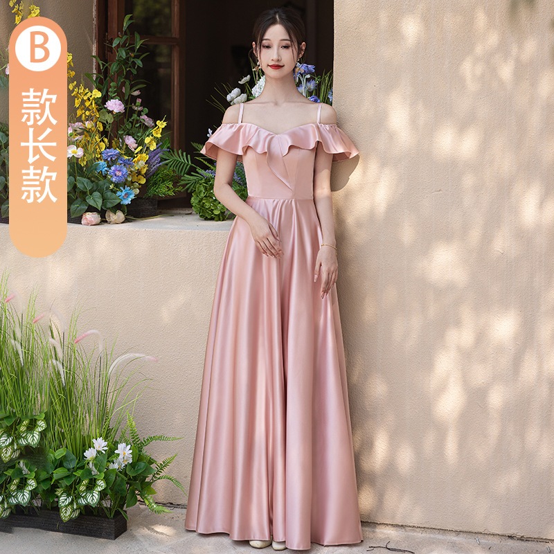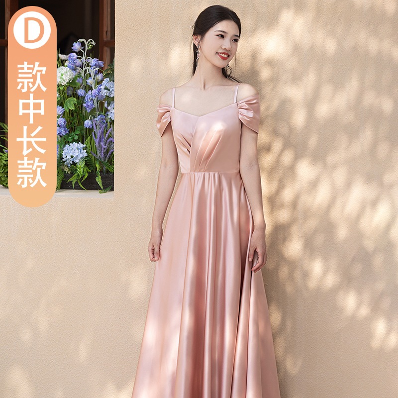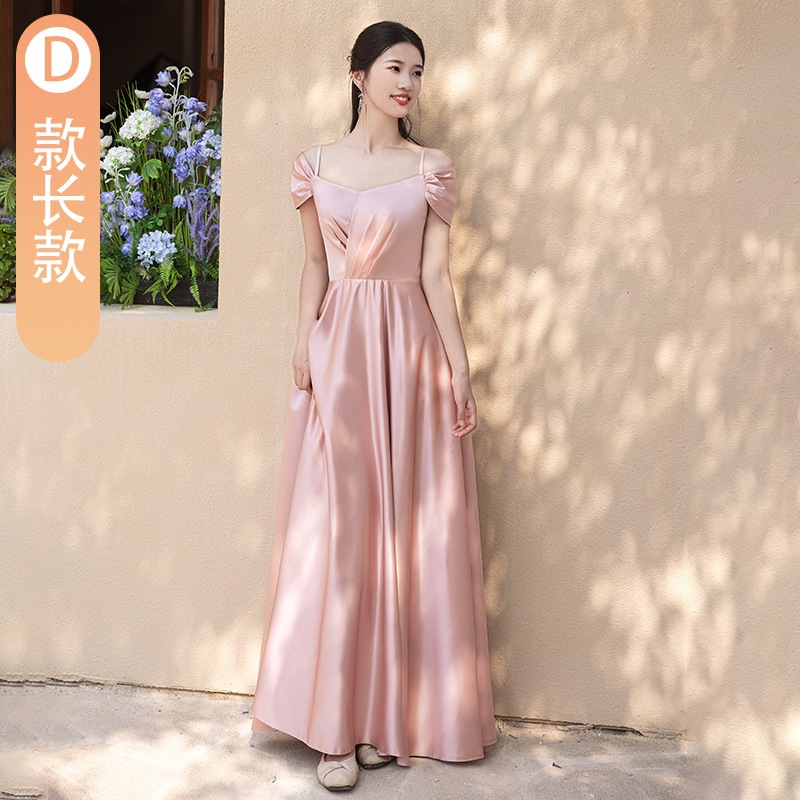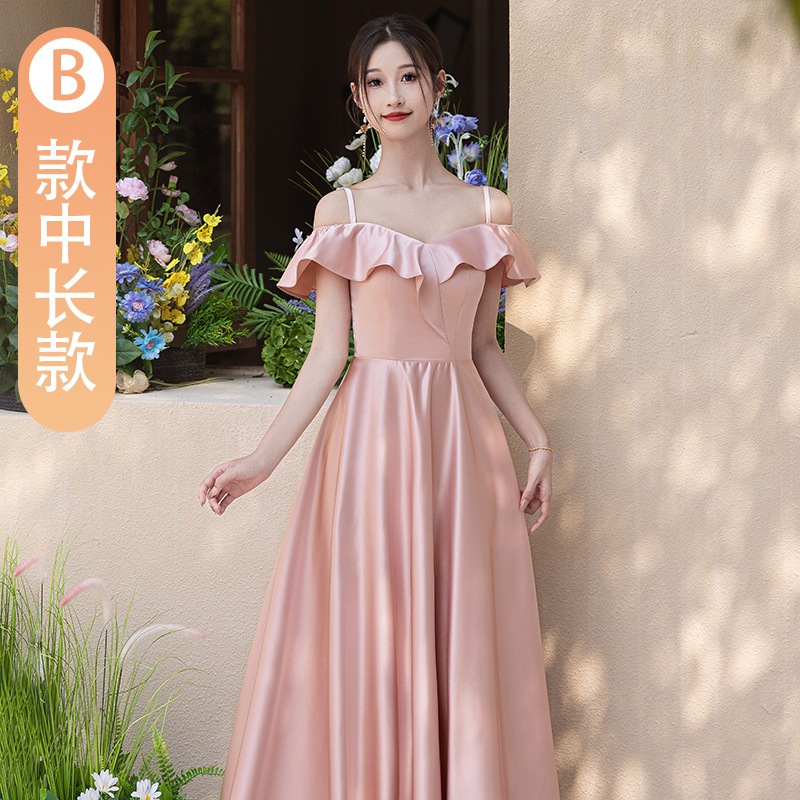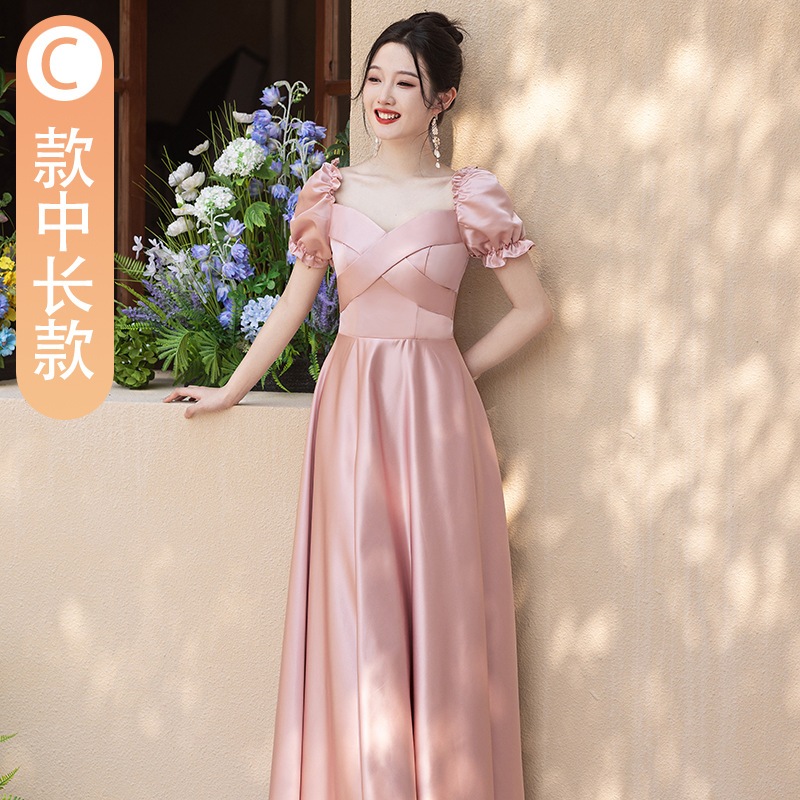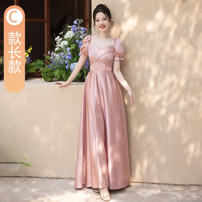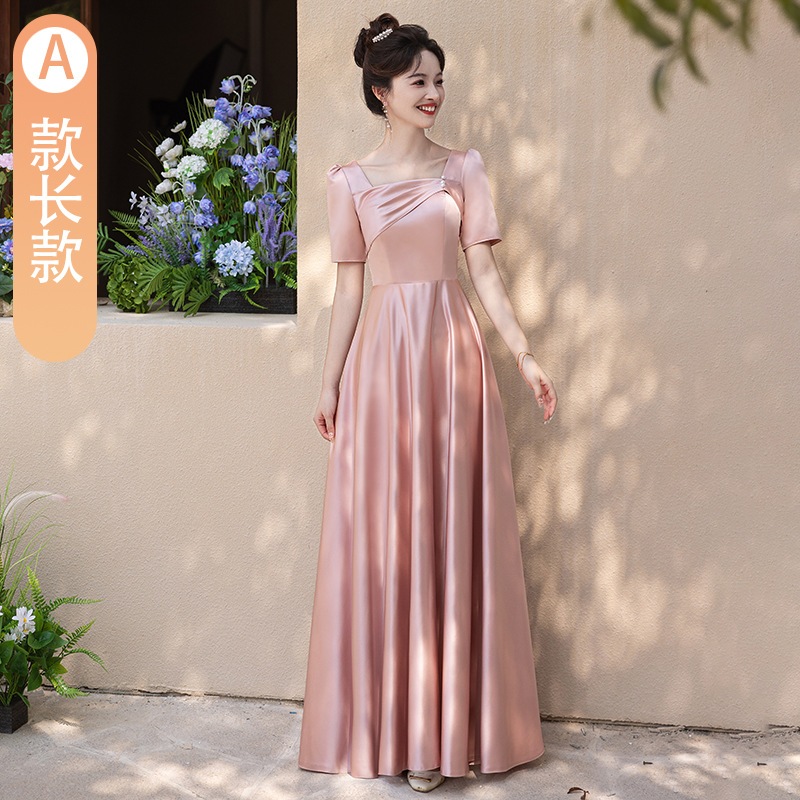 ウェディングドレス ブライズメイド カラードレス ピンク サテン シンプル 普段着可 韓国風 無地 ミディ丈 ロング丈 フォーマルドレス 二次会 Aライン 高校生 卒業式 結婚式 ワンピース 記念日