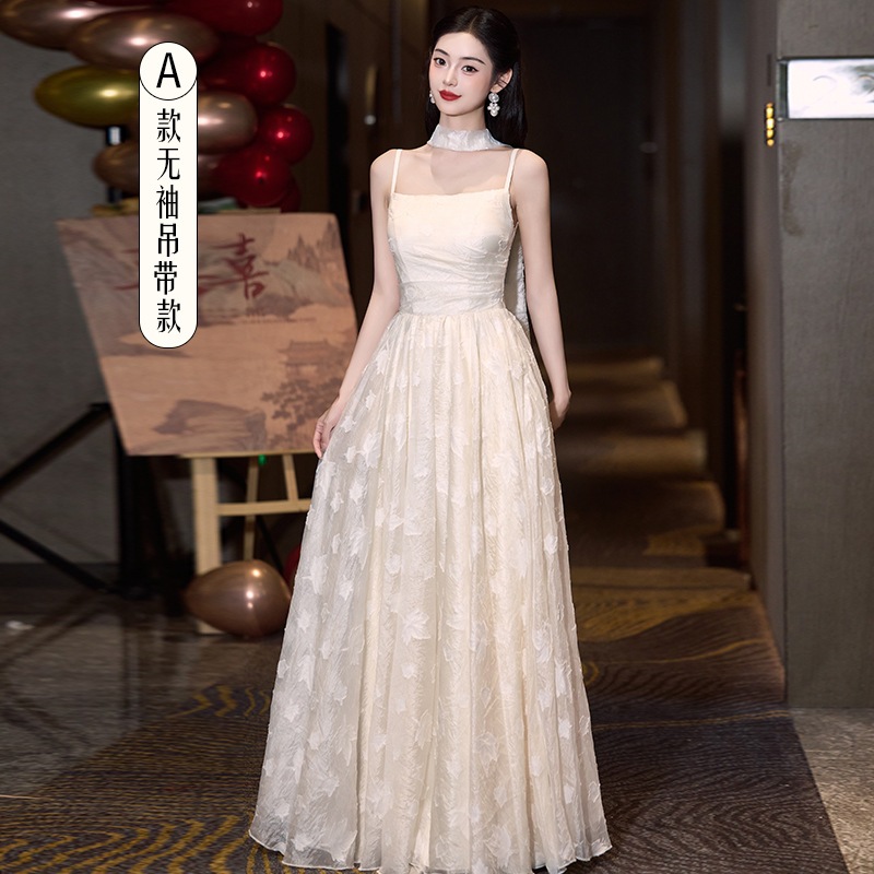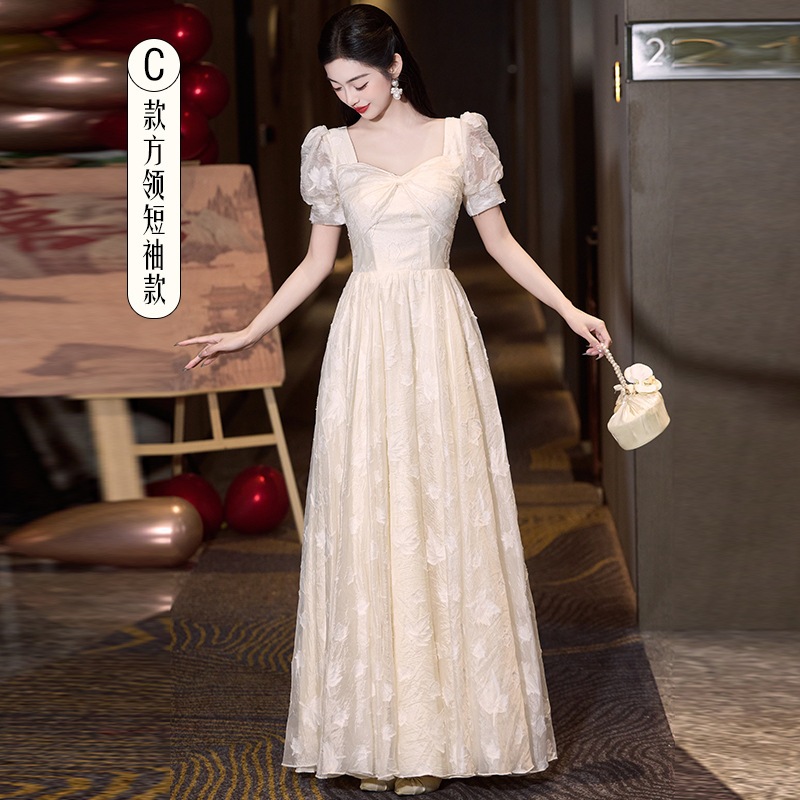 ウェディングドレス ブライズメイド カラードレス シャンパン色 上品 高級感 綺麗 韓国風 ロング丈 フォーマルドレス 二次会 Aライン 高校生 卒業式 結婚式 ワンピース オフショルダー 記念日