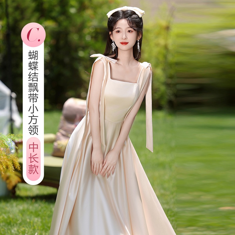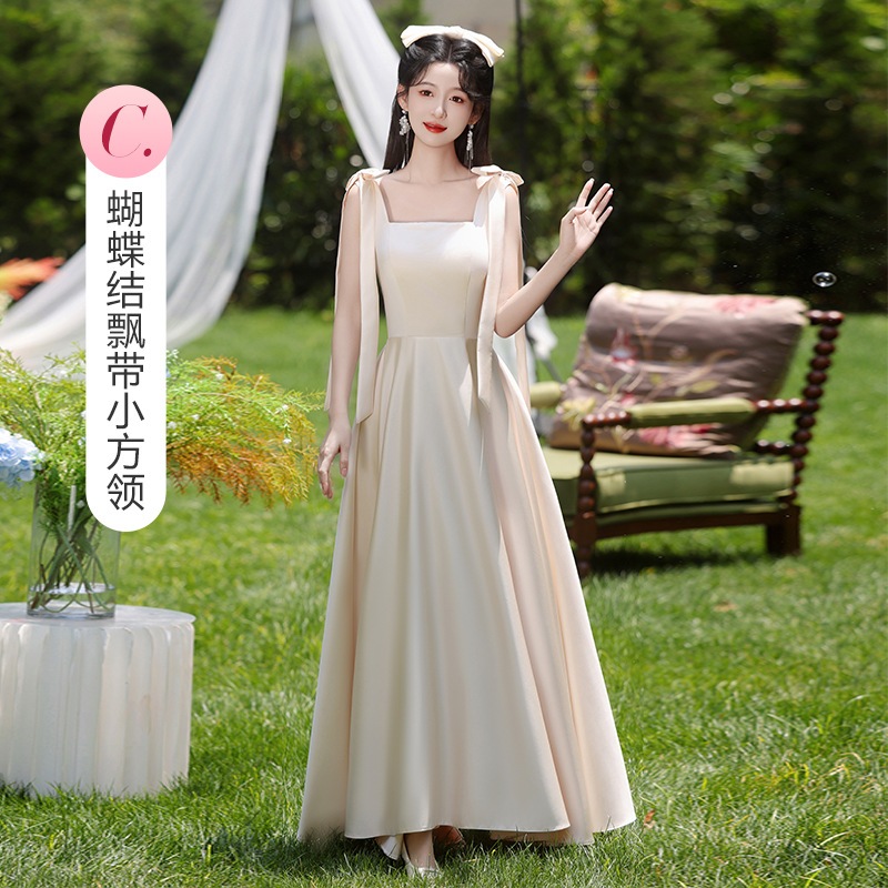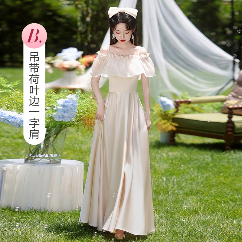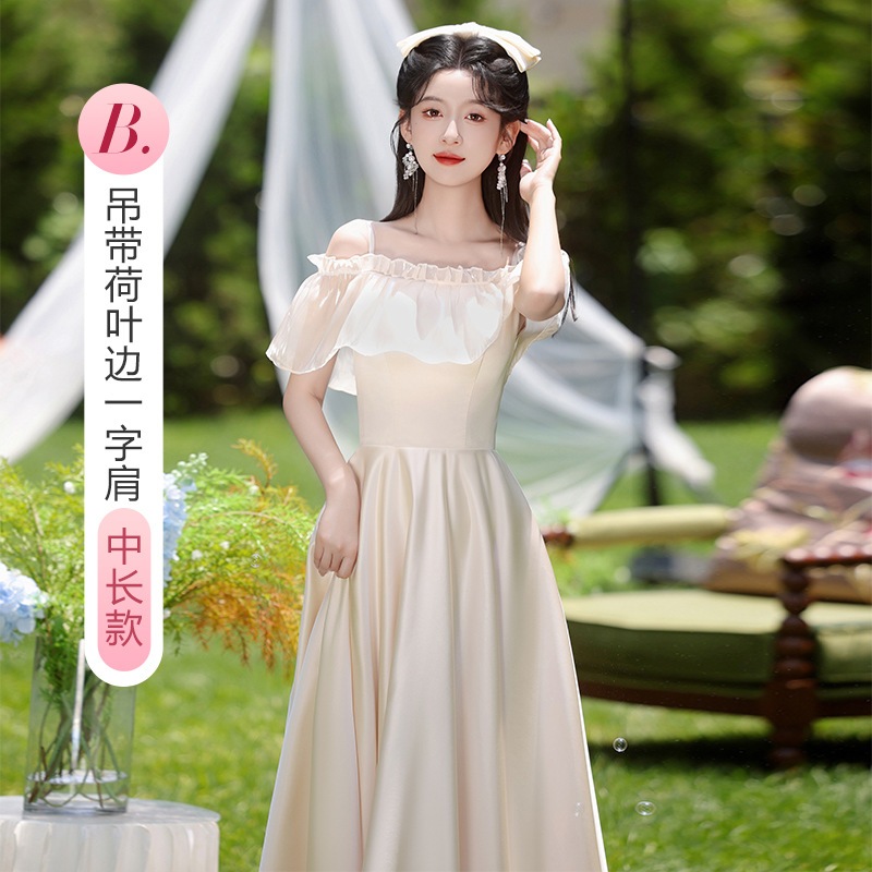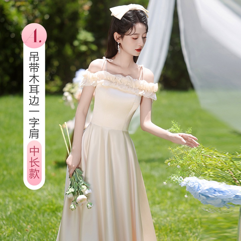 ウェディングドレス ブライズメイド カラードレス サテン シンプル 韓国風 無地 ミディ丈 ロング丈 フォーマルドレス 二次会 Aライン 高校生 卒業式 結婚式 ワンピース オフショルダー 記念日