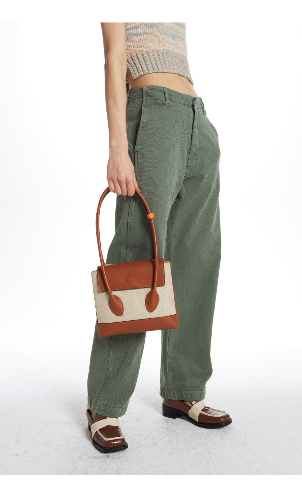 [AHNI] SANDIE _ BROWN / SILVER 牛革ショルダーバッグ