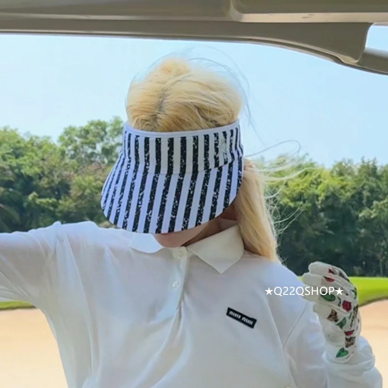 ゴルフ帽子 キャップ サンバイザー 春夏 日焼け止め ストライプ ピンク 黒 白 レディース スポーツ ゴルフパーツ ぼうし ゴルフウェア カジュアル 韓国風 かわいい おしゃれ