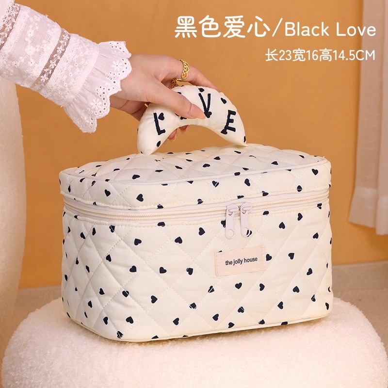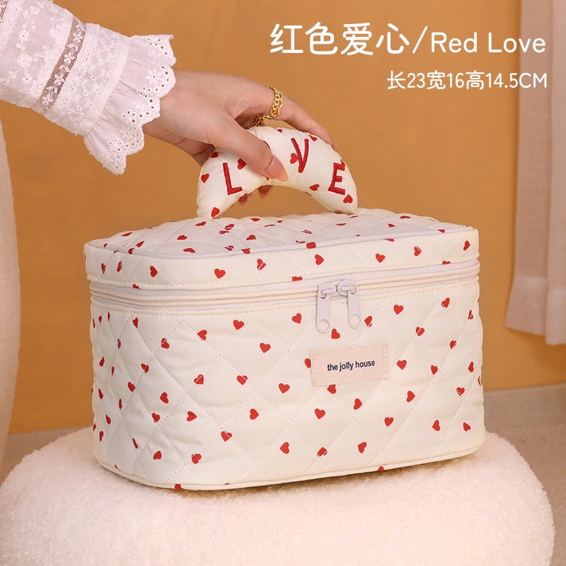 新デザイン 愛情あふれるメイクアップバッグ 大容量ハンドバッグ型メイクアップバッグ 大容量多機能携帯用トラベルスキンケア用品・洗顔用品収納バッグ メイクアップバッグ