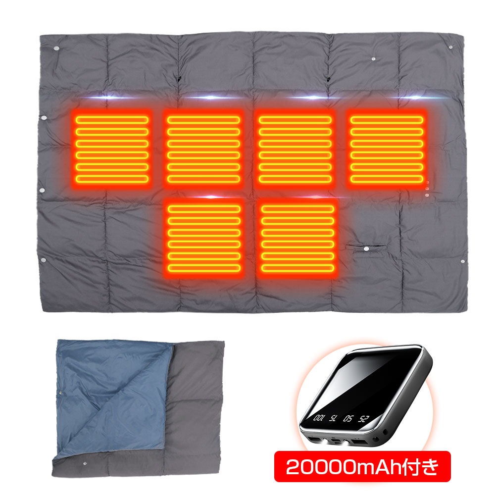 「日本製10枚ヒーター 6WAY兼用」電気毛布 電気ひざ掛け 3段階温度調節 掛け着る両用 電気ブランケット 丸洗い可USB給電 防寒対策 モバイルバッテリー付き