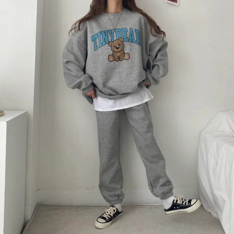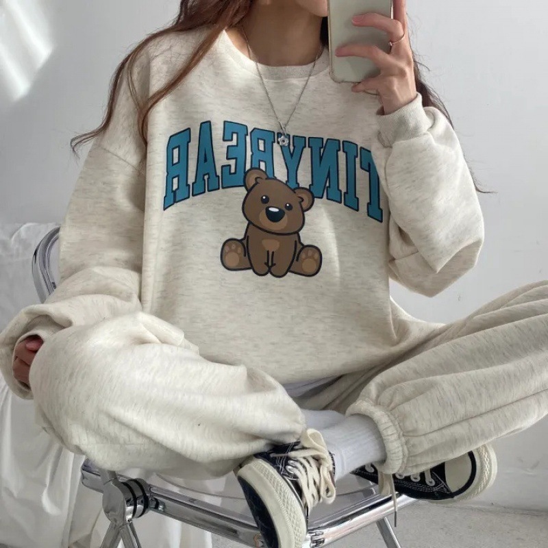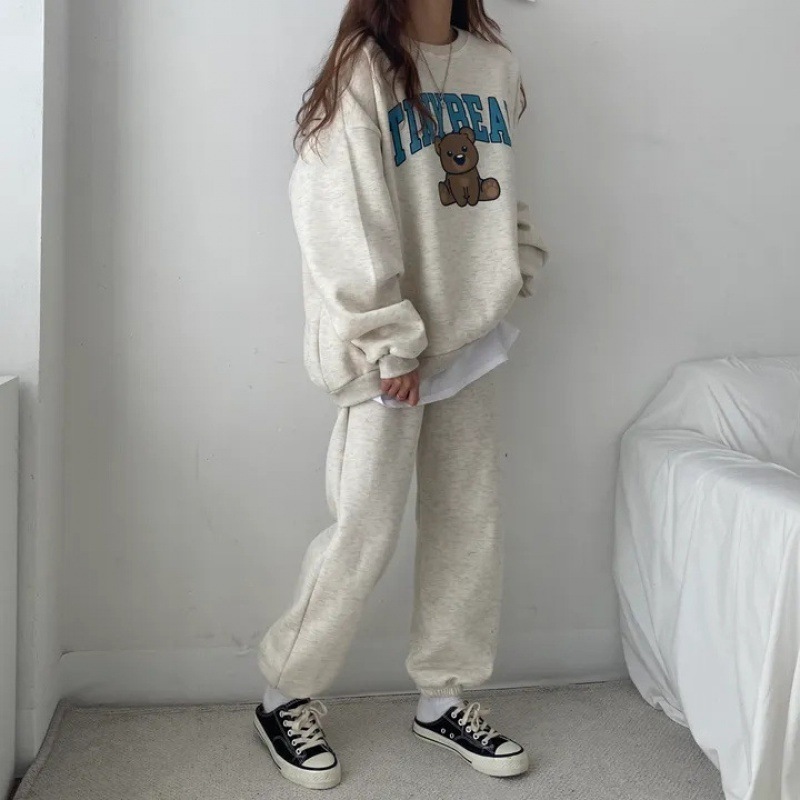 【室内用・室外対応】シンプル 長袖 Tシャツ 運動 快適 bear 二点セット ゆったり セット レディースセットアップ ルームウェア おしゃれ ヨガウェア スウェット セットアップ