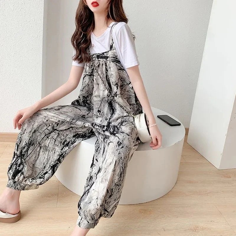 【無 料!】サロペットパンツ/ スカート/ オールインン 韓国ファッション レデイース オーバーオール 夏 涼しい ズボン 大きいサイズ 花柄 体型カバー ゆったりワイドパンツ ロングスカート